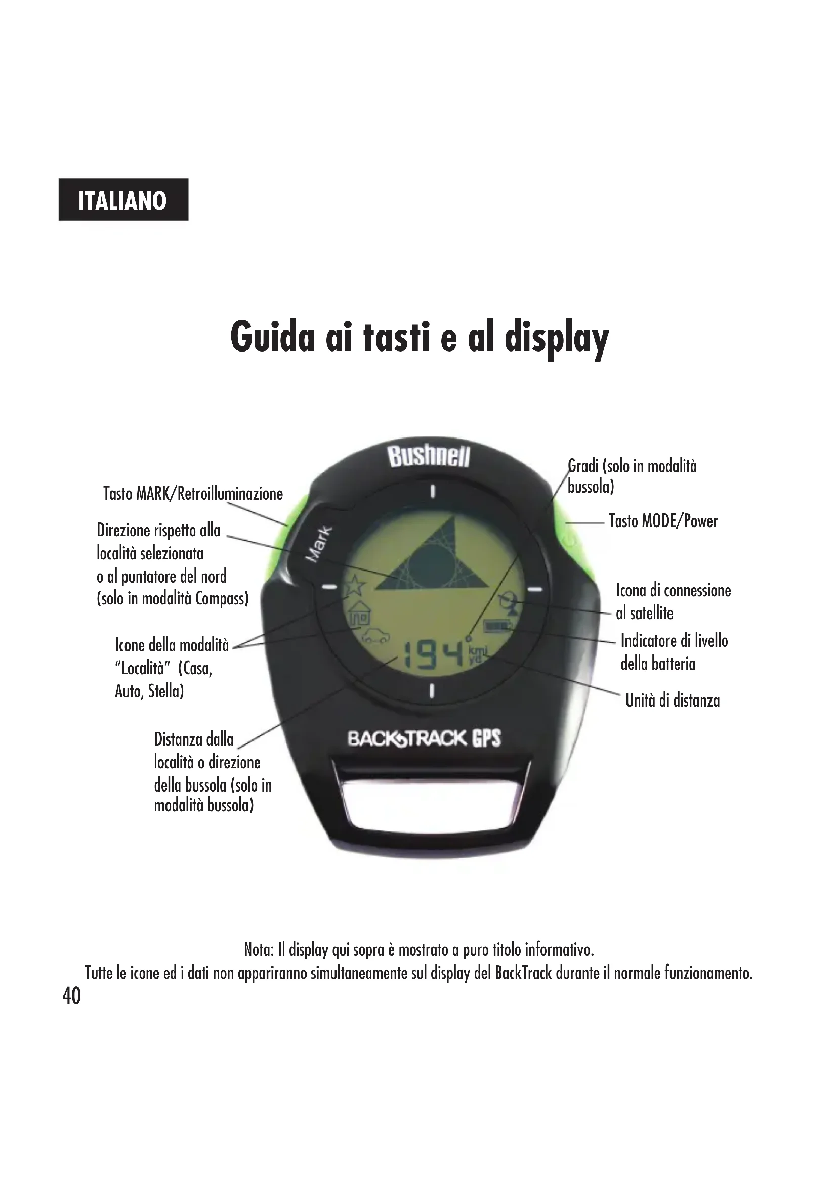 MANUALE UTENTE BackTrack G2 BUSHNELL