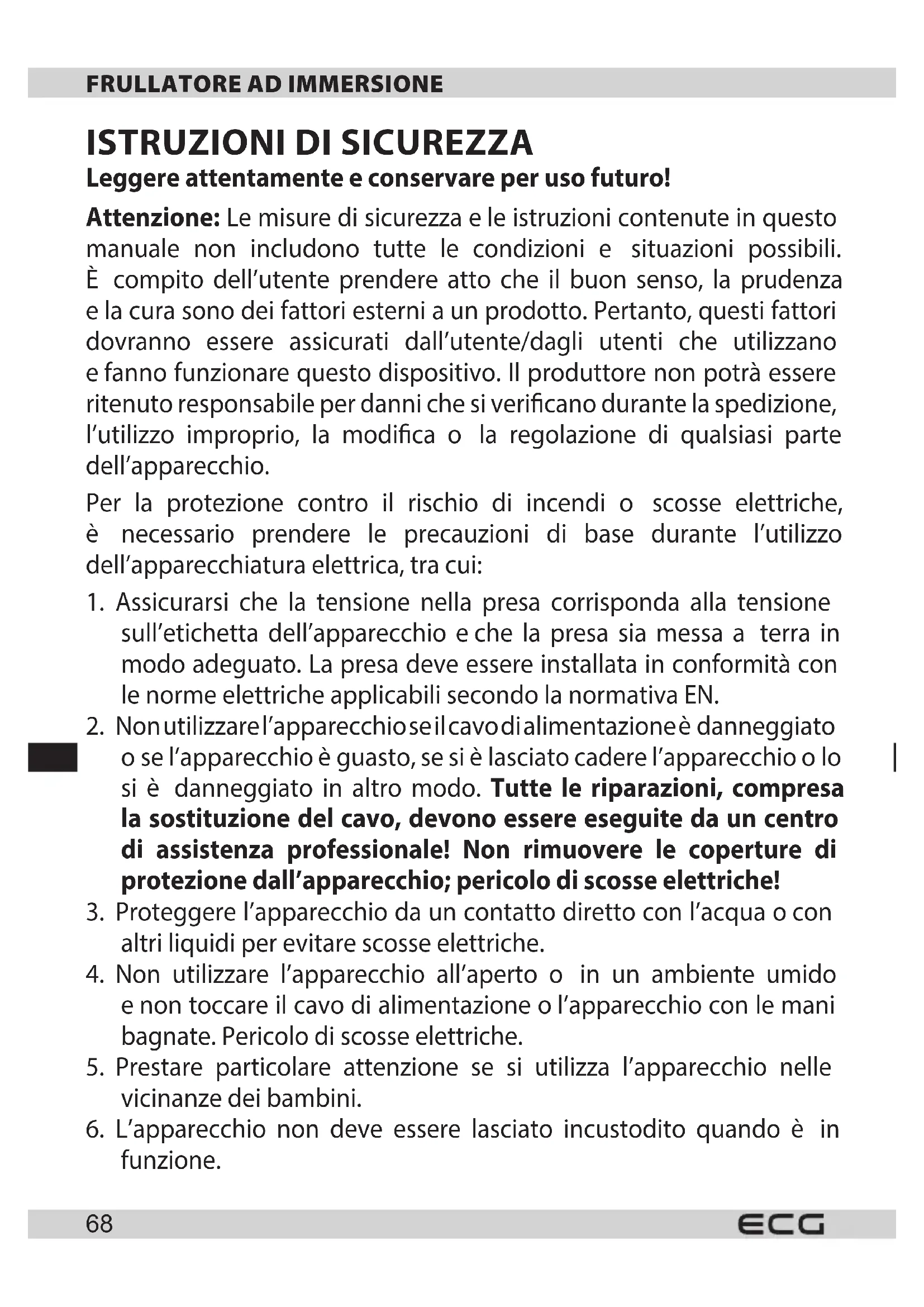 di questo manuale. L’uso scorretto può provocare lesioni. Questo apparecchio èstato progettato solo per uso domestico. Il produttore non può essere ritenuto responsabile per danni causati da un uso improprio di questo apparecchio.