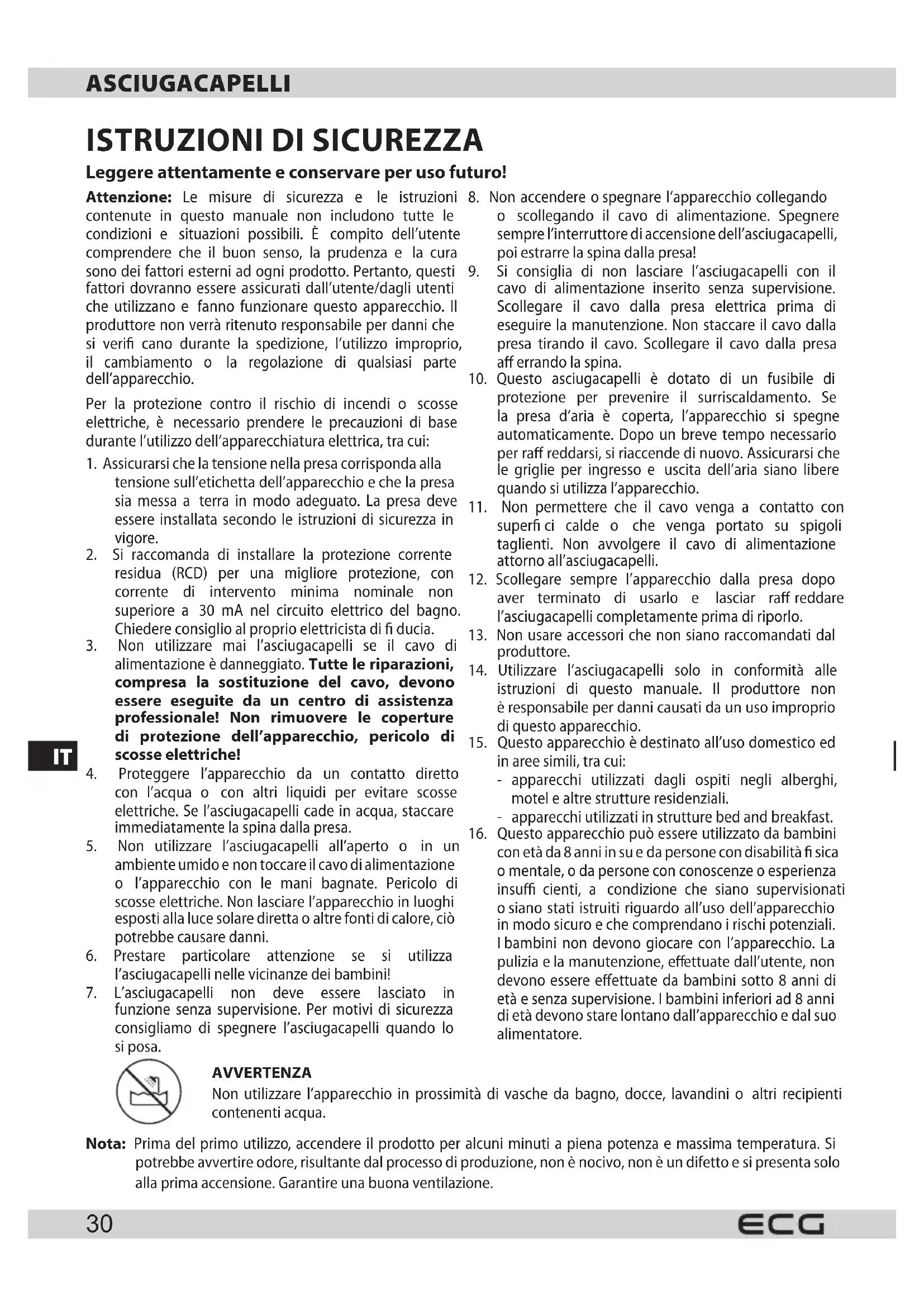 14. Utilizzare l’asciugacapelli solo in conformità alle