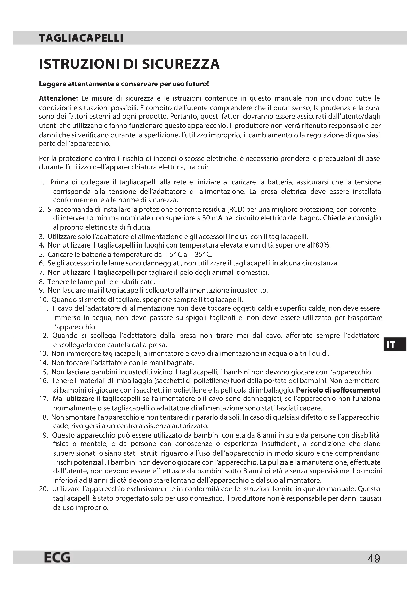 tagliacapelli èstato progettato solo per uso domestico. Il produttore non èresponsabile per danni causati da uso improprio.IT