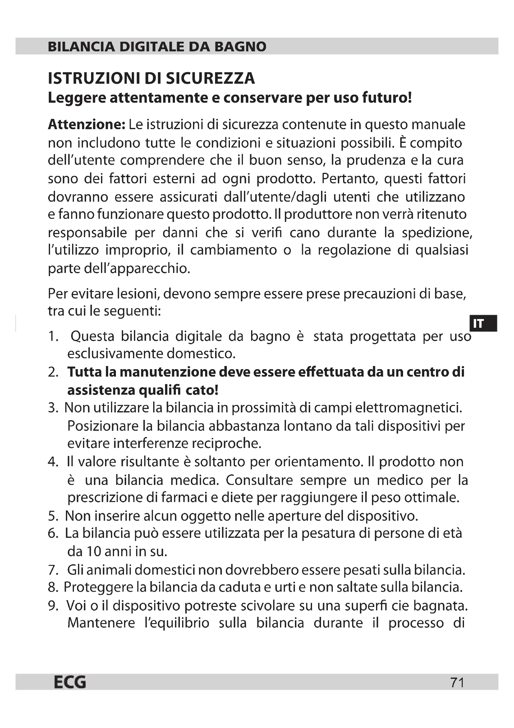 - Questa bilancia digitale da bagno è stata progettata per uso esclusivamente domestico.