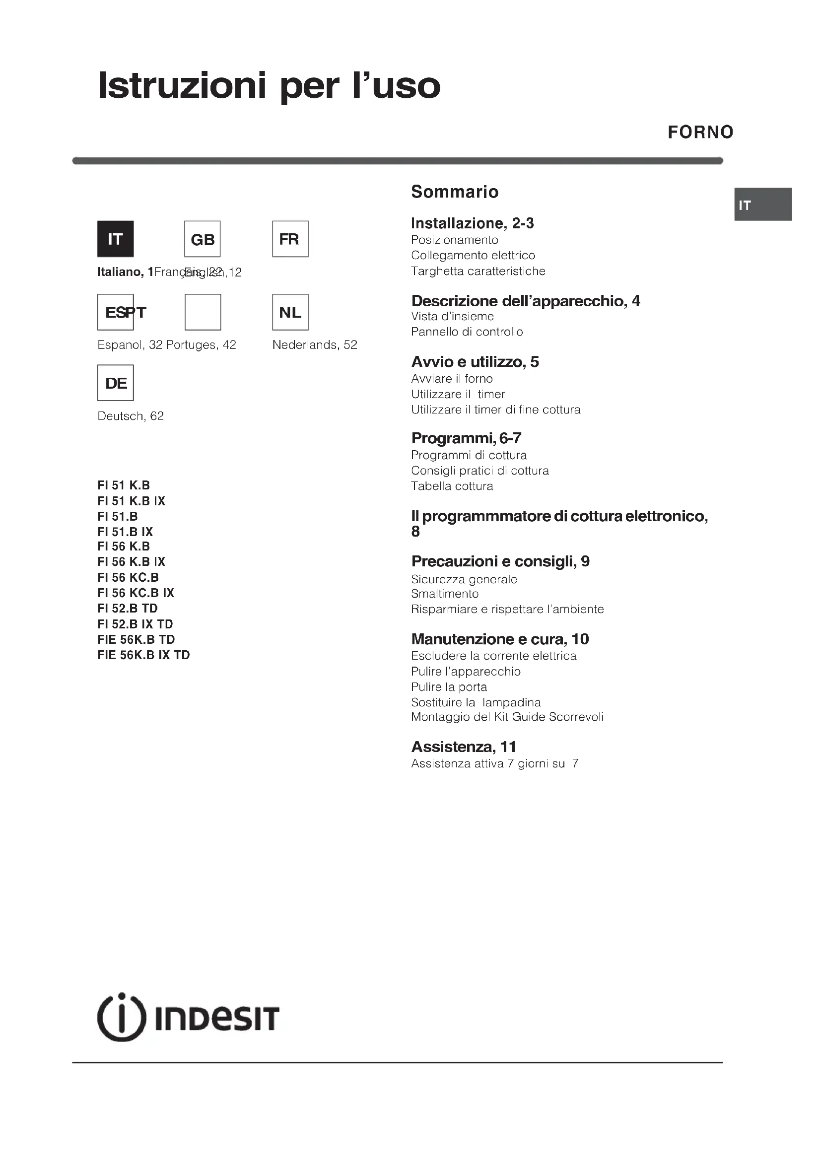 FI 52.B IX TD - Forno INDESIT - Manuale utente e istruzioni gratuiti