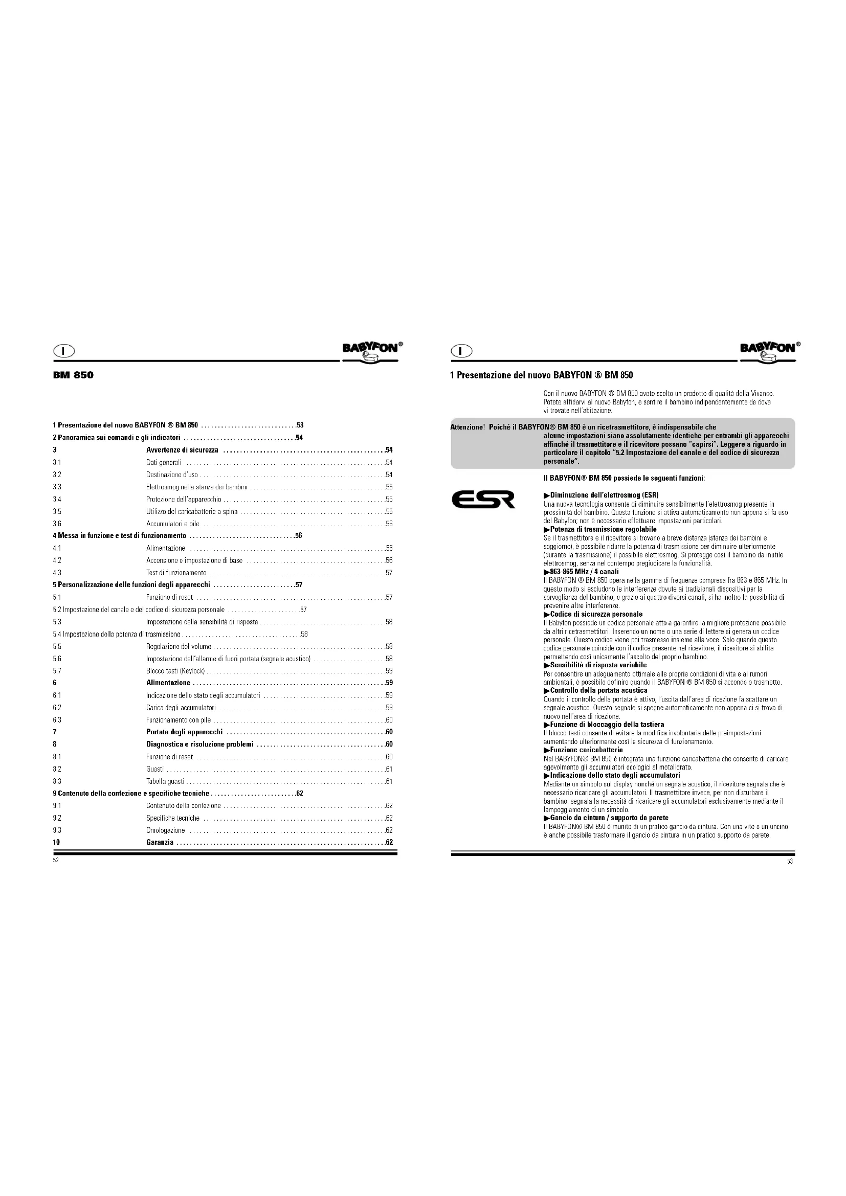 Prima di mettere per la prima volta l’apparecchio in funzione leggere attentamente le presenti istruzioni per l’uso, dopodiché conservarle. Il BABYFON® BM 850 non può sostituire in alcun caso la presenza di una persona. Qualora non sia più possibile servirsi dell’apparecchio, informarsi presso i servizi competenti su dove portarlo per smaltirlo correttamente. Quando si consegna l’apparecchio a un terzo, dare anche le istruzioni per l’uso.