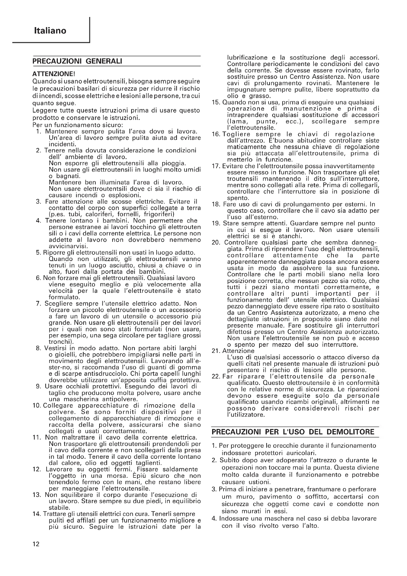 PRECAUZIONI PER L'USO DEL DEMOLITORE