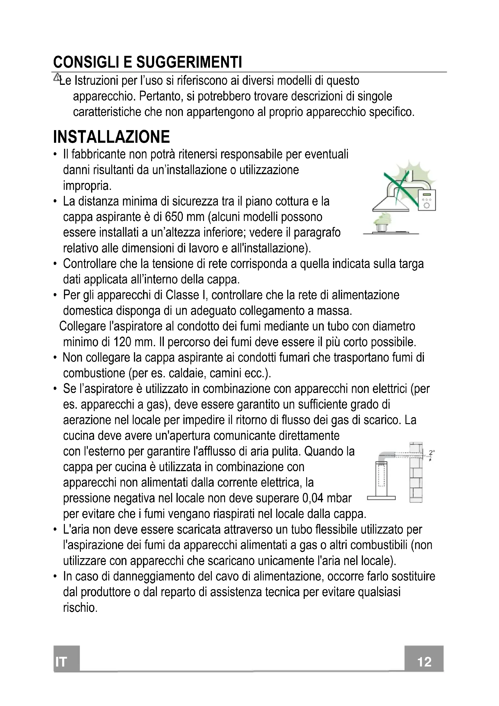 - Non usare mai la cappa per scopi diversi da quelli per cui è stata progettata.