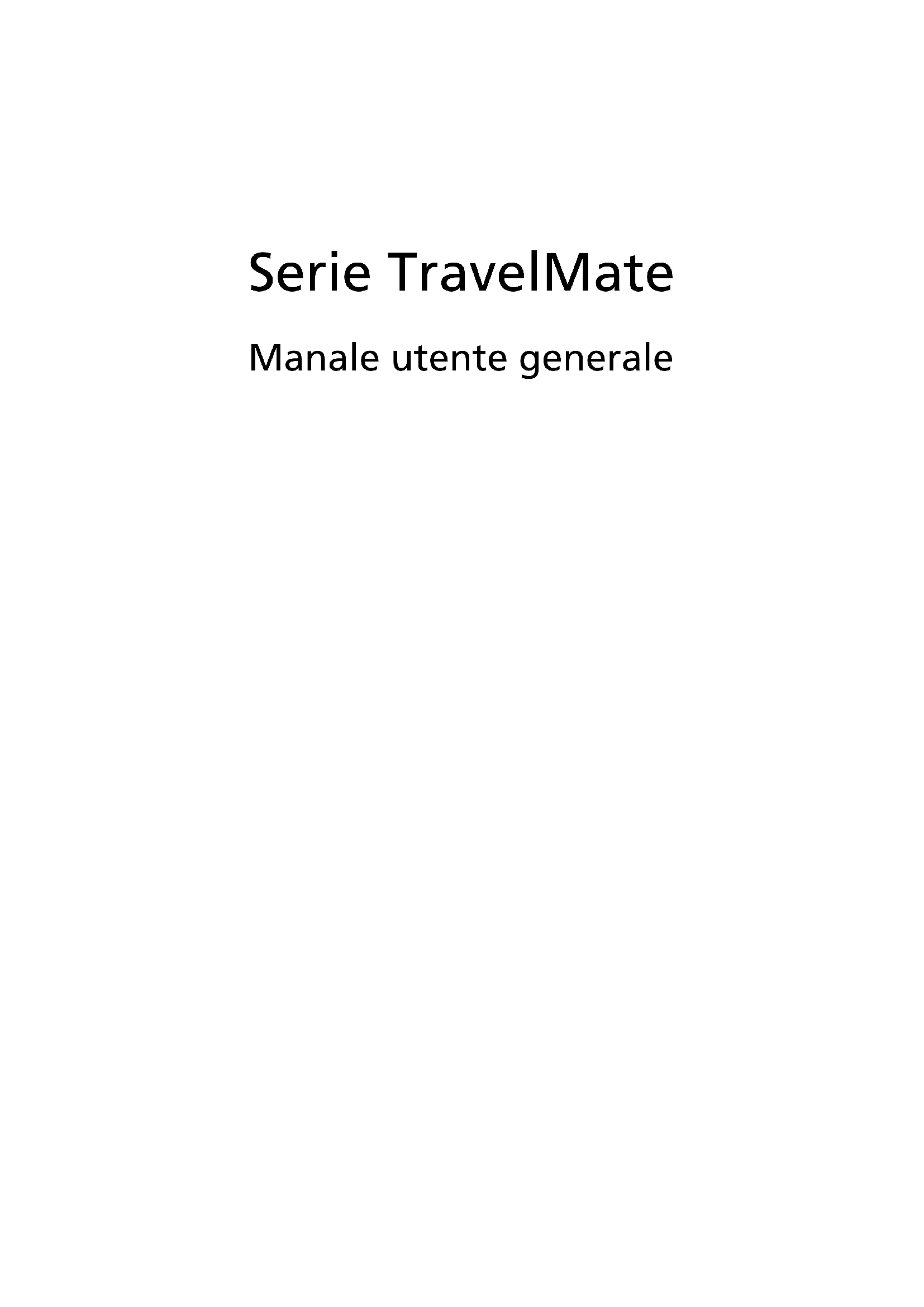 - v'n Pixel fault class Class IISerie TravelMate Manale utente generaleNumero di modello: _______________________________ Numero di serie: ___________________________________ Data di acquisto: __________________________________ Luogo d'acquisto: __________________________________ Le informazioni contenute in questa pubblicazione sono soggette a modifiche periodiche, senza obbligo di preavviso ad alcuna persona. Tali modifiche saranno incorporate nelle nuove edizioni di questo manuale, o in documenti e pubblicazioni integrative. Il costruttore non rilascia dichiarazioni, né garanzie di commerciabilità o di idoneità ad uno scopo specifico. Trascrivere nello spazio sottostante il numero di modello, il numero di serie, la data d'acquisto e il luogo d'acquisto.Il numero di serie e il numero di modello sono riportati sull'etichetta applicata al computer.In tutta la corrispondenza relativa all'apparecchio si dovranno sempre citare numero di serie, numero di modello e data e luogo d'acquisto. È severamente vietato riprodurre, memorizzare in un sistema di recupero o trasmettere parti di questa pubblicazione, in qualsiasi forma o con qualsiasi mezzo, elettronico, meccanico, fotocopie, registrazioni o altro, senza la previa autorizzazione scritta della Acer Incorporated. © 2011 Tutti i diritti riservati. Manale utente generale Serie TravelMate Prima edizione: 02/2011iii Informazioni su sicurezza e comfort Istruzioni per la sicurezza Leggere con attenzione queste istruzioni riportate. Conservare il presente documento per riferimenti futuri. Rispettare tutte le avvertenze ed istruzioni riportate sul prodotto. Spegnere il prodotto prima di procedere alla pulizia Prima di pulire il computer, scollegarlo dalla presa della corrente. Non usare detergenti liquidi o spray. Per la pulizia, servirsi di un panno umido. ATTENZIONE alla spina durante lo scollegamento del dispositivo Durante il collegamento e lo scollegamento dell’alimentazione, osservare le linee guida elencate di seguito: Installare l’unità di alimentazione prima di eseguire il collegamento del cavo di alimentazione alla presa CA. Scollegare il cavo di alimentazione prima di rimuovere l’unità di alimentazione dal computer. Se il sistema è dotato di più fonti di alimentazione, interromperne il collegamento al sistema scollegando tutti i cavi di alimentazione. ATTENZIONE all’accessibilità Assicurarsi che la presa di corrente a cui si intende collegare il cavo di alimentazione sia facilmente accessibile e posizionata il più vicino possibile all’operatore. Per interrompere l’alimentazione dell’apparecchiatura, scollegare il cavo di alimentazione dalla presa elettrica. PRECAUZIONI per la scheda non operativa in dotazione (solo per alcuni modelli) Il computer è spedito con schede non operative in plastica inserite negli slot. Queste schede servono a proteggere gli slot da polvere, oggetti metallici e altre particelle quando non in uso. Conservare le schede non operative per poterle inserire negli slot quando non sono inserite schede. ATTENZIONE durante l’ascolto Per proteggere l’udito, attenersi alle istruzioni seguenti.