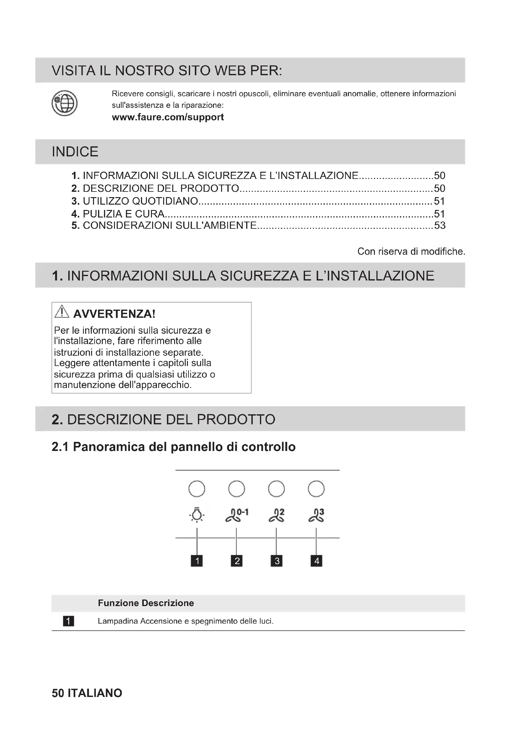 FHB92671XA - Cappa da cucina FAURE - Manuale utente e istruzioni gratuiti