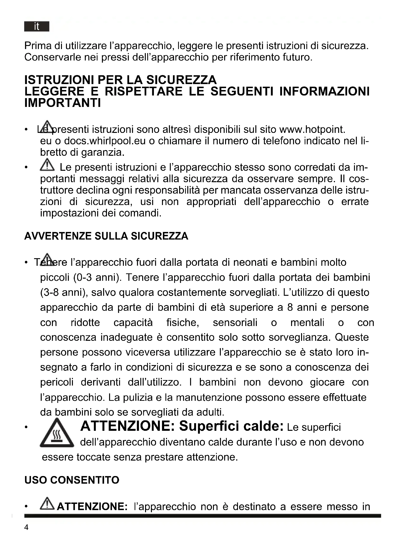 - Le presenti istruzioni sono altresì disponibili sul sito www.hotpoint. eu o docs.whirlpool.eu o chiamare il numero di telefono indicato nel li- bretto di garanzia.