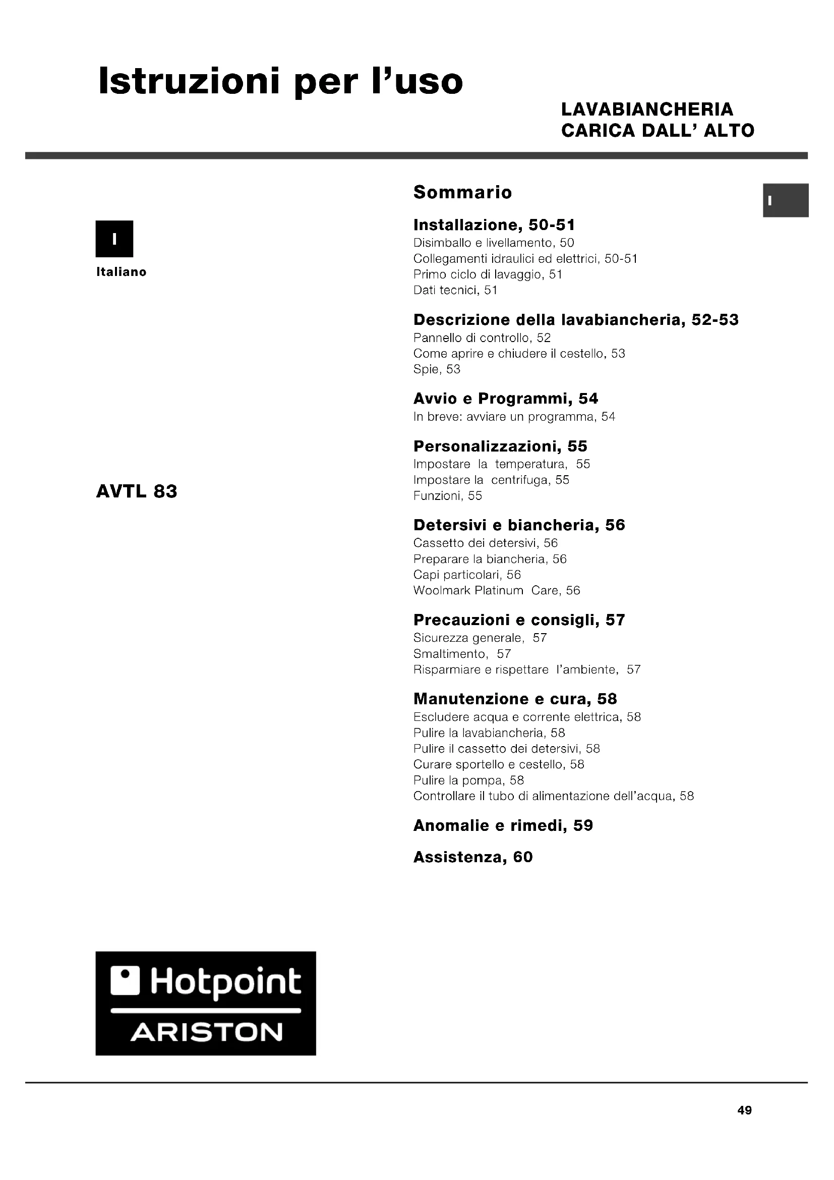 Trova gratuitamente il manuale del dispositivo AVTL 83 (EU) HOTPOINT ARISTON in formato PDF.