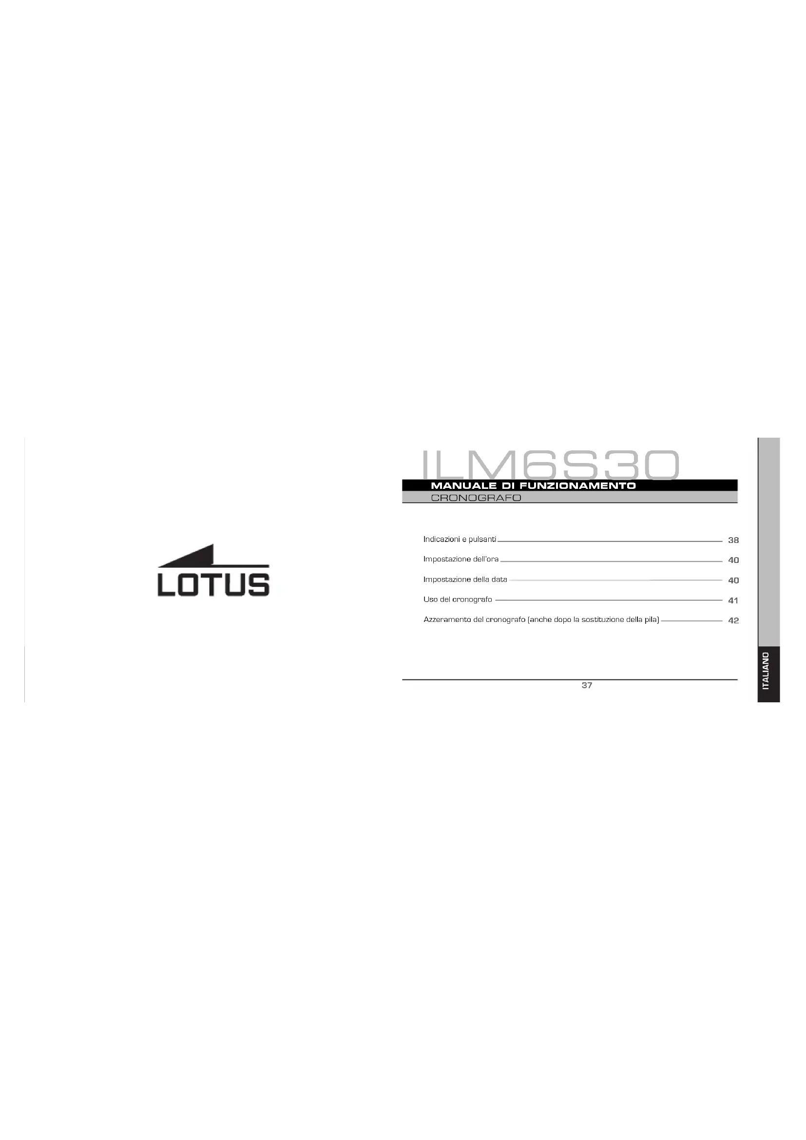 Scarica le istruzioni per il tuo Orologio in formato PDF gratuitamente! Trova il tuo manuale 10112 - Lotus e riprendi in mano il tuo dispositivo elettronico. In questa pagina sono pubblicati tutti i documenti necessari per l'utilizzo del tuo dispositivo. 10112 del marchio Lotus.