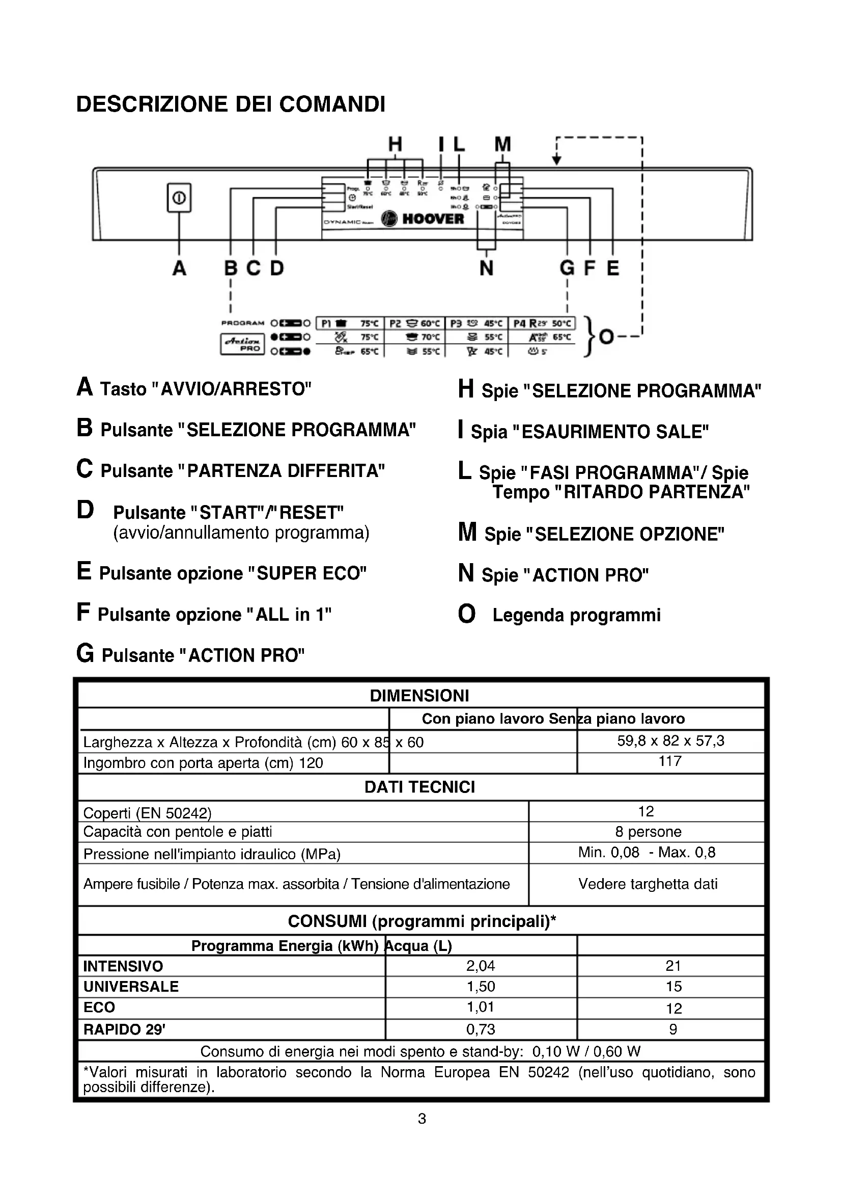 MANUALE UTENTE DDY 062X3 HOOVER
