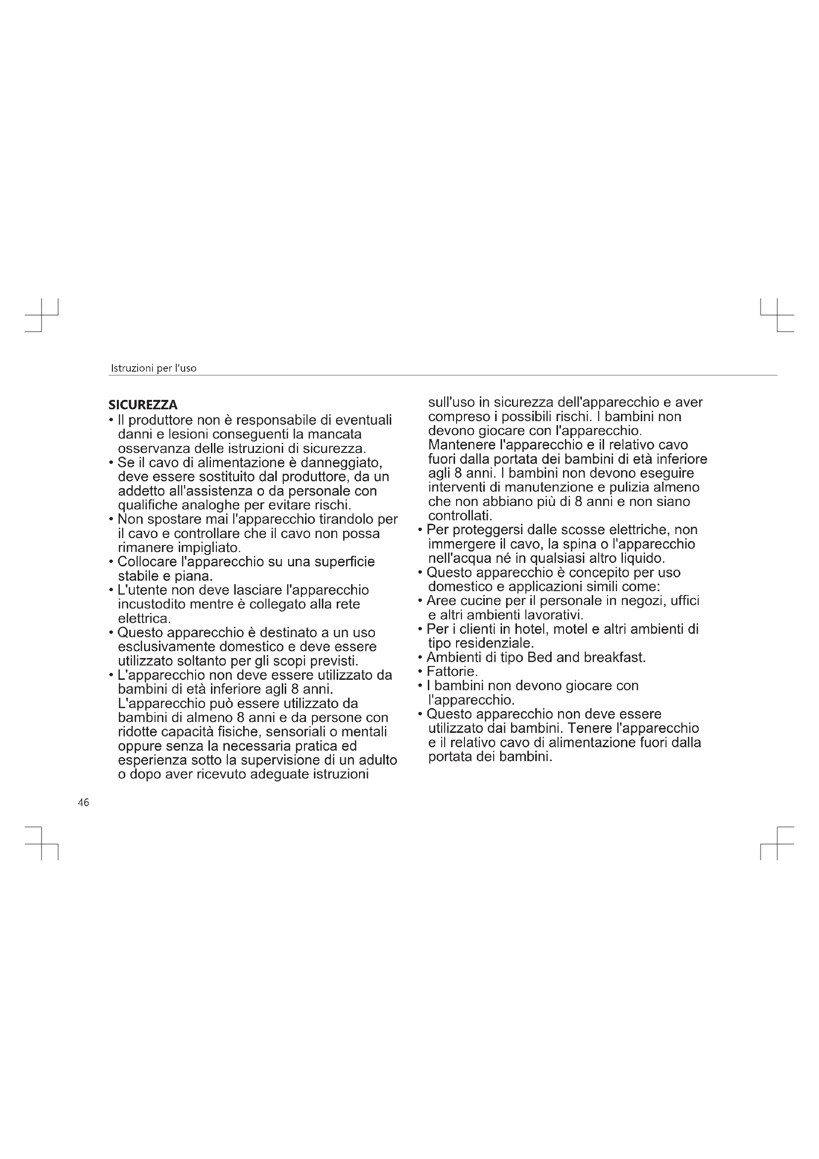 - Questo apparecchio non deve essere utilizzato dai bambini. Tenere l'apparecchio e il relativo cavo di alimentazione fuori dalla portata dei bambini.Istruzioni per l'uso