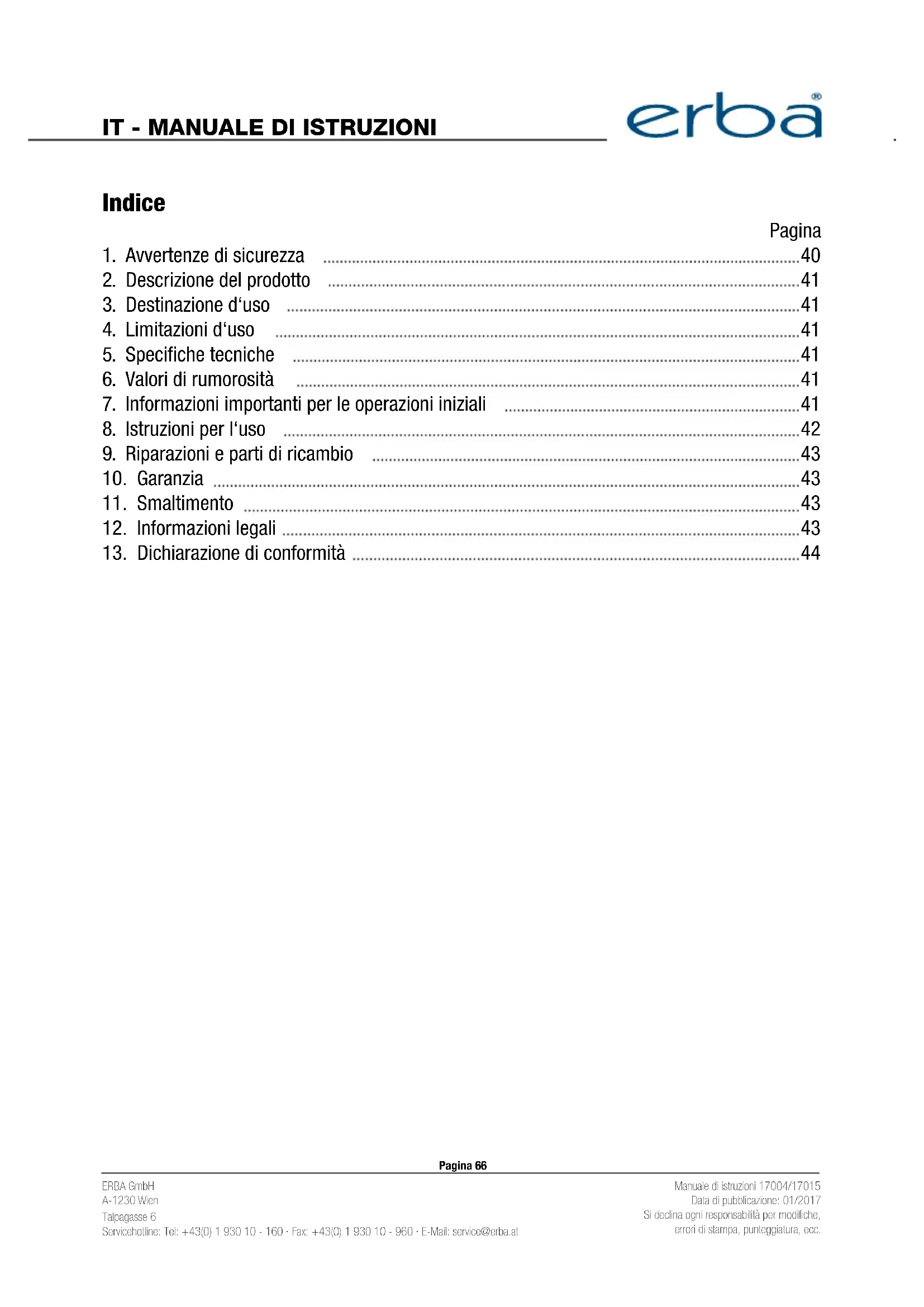 Trova gratuitamente il manuale del dispositivo 17015 Erba in formato PDF.