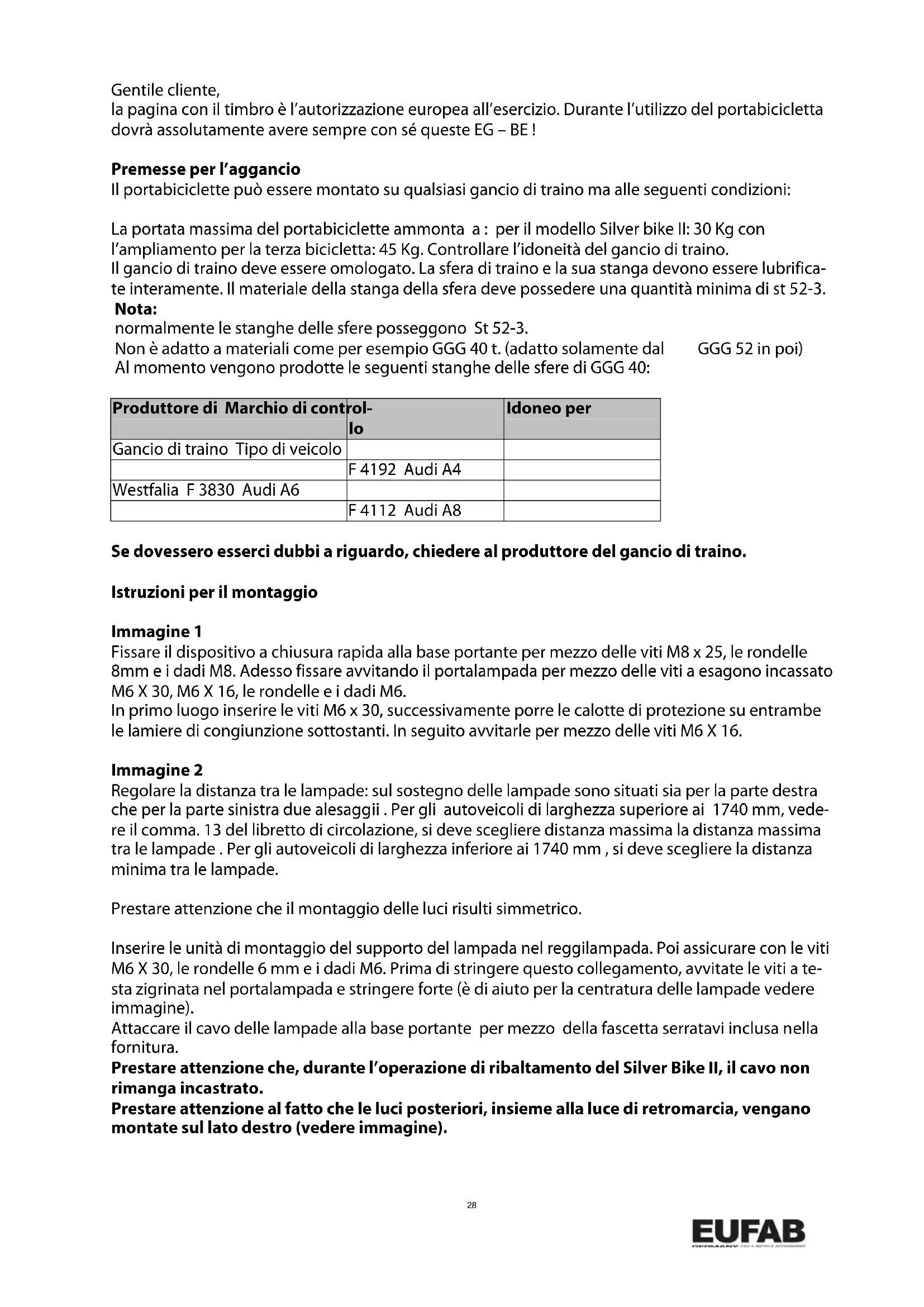 Silver Bike II - Portabici Eufab - Manuale utente e istruzioni gratuiti
