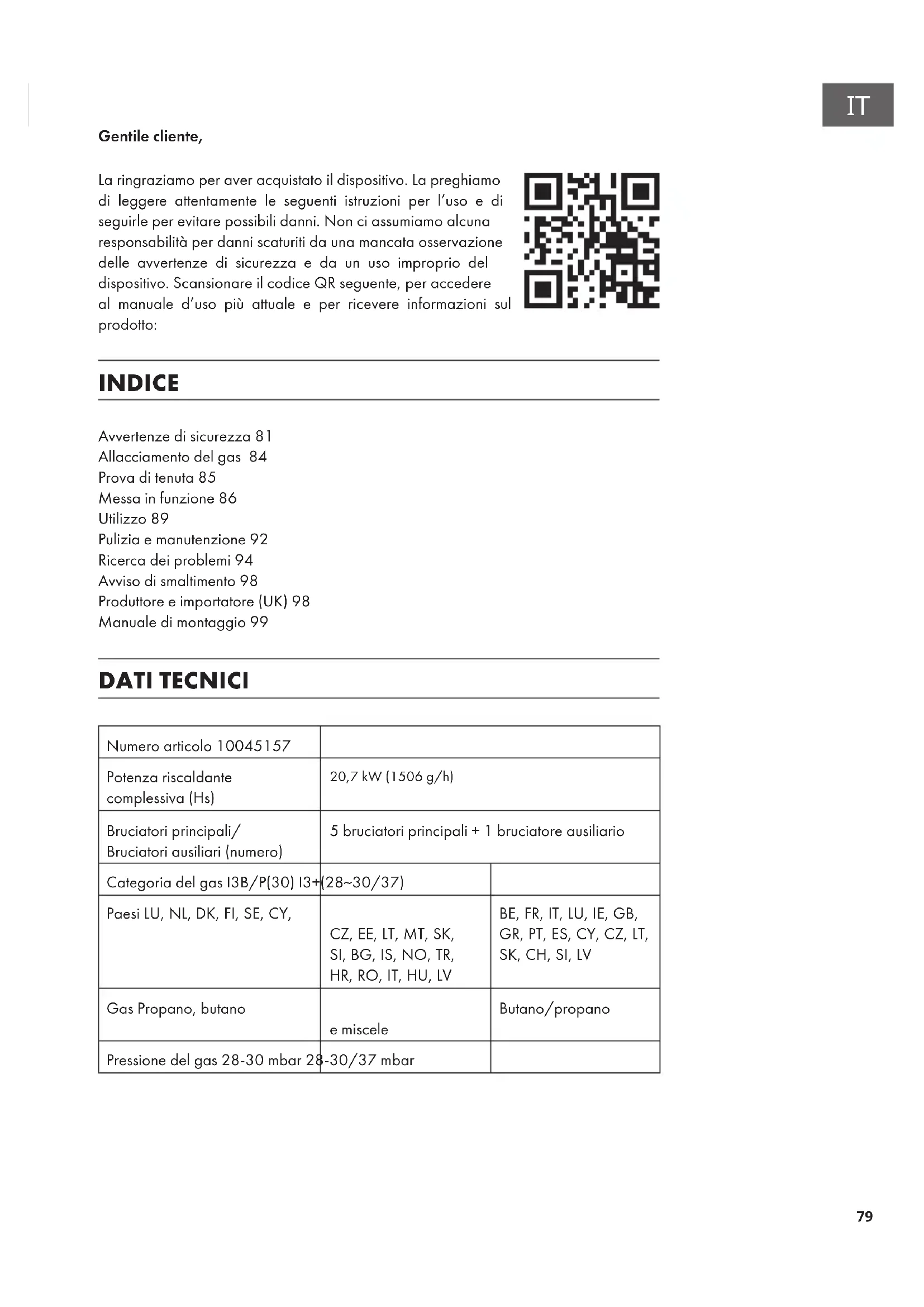 Il dispositorio può essere utilizzato solo all'aperto. - I componenti lavormente accessibili possono diventare estremamente caldi durante l'uso del dispositivo. Tenere i bambini lontano dal dispositivo. Quando si maneggiano componenti bollenti, indossare quanti protettivi.