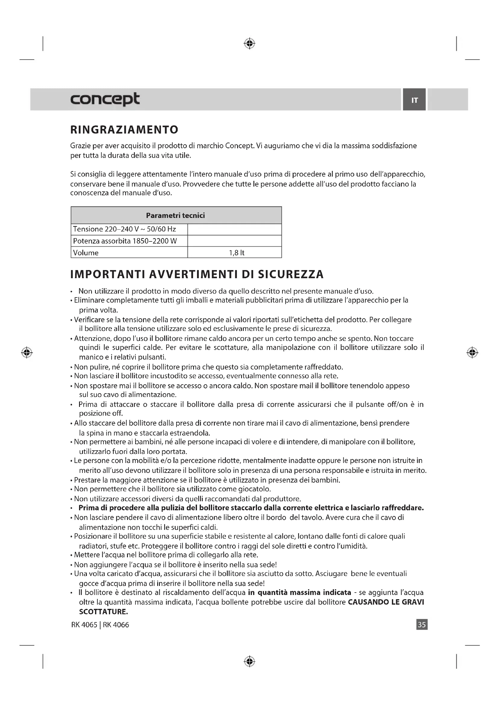 RK 4065 - Bollitore Concept - Manuale utente e istruzioni gratuiti