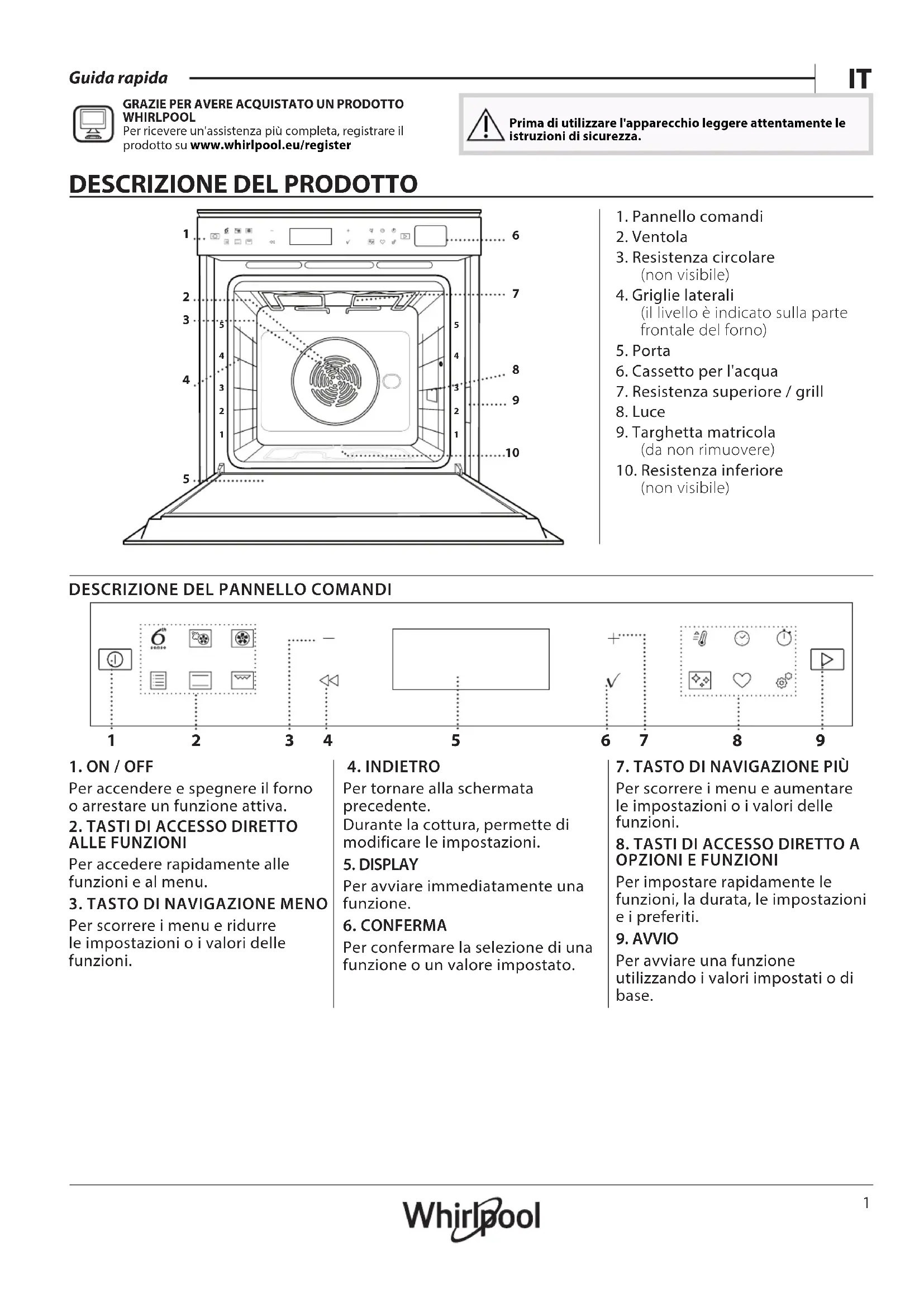 WHIRLPOOL Per ricevere un'assistenza più completa, registrare il prodotto su www . whirlpool . eu/ register Prima di utilizzare l'apparecchio leggere attentamente le istruzioni di sicurezza.