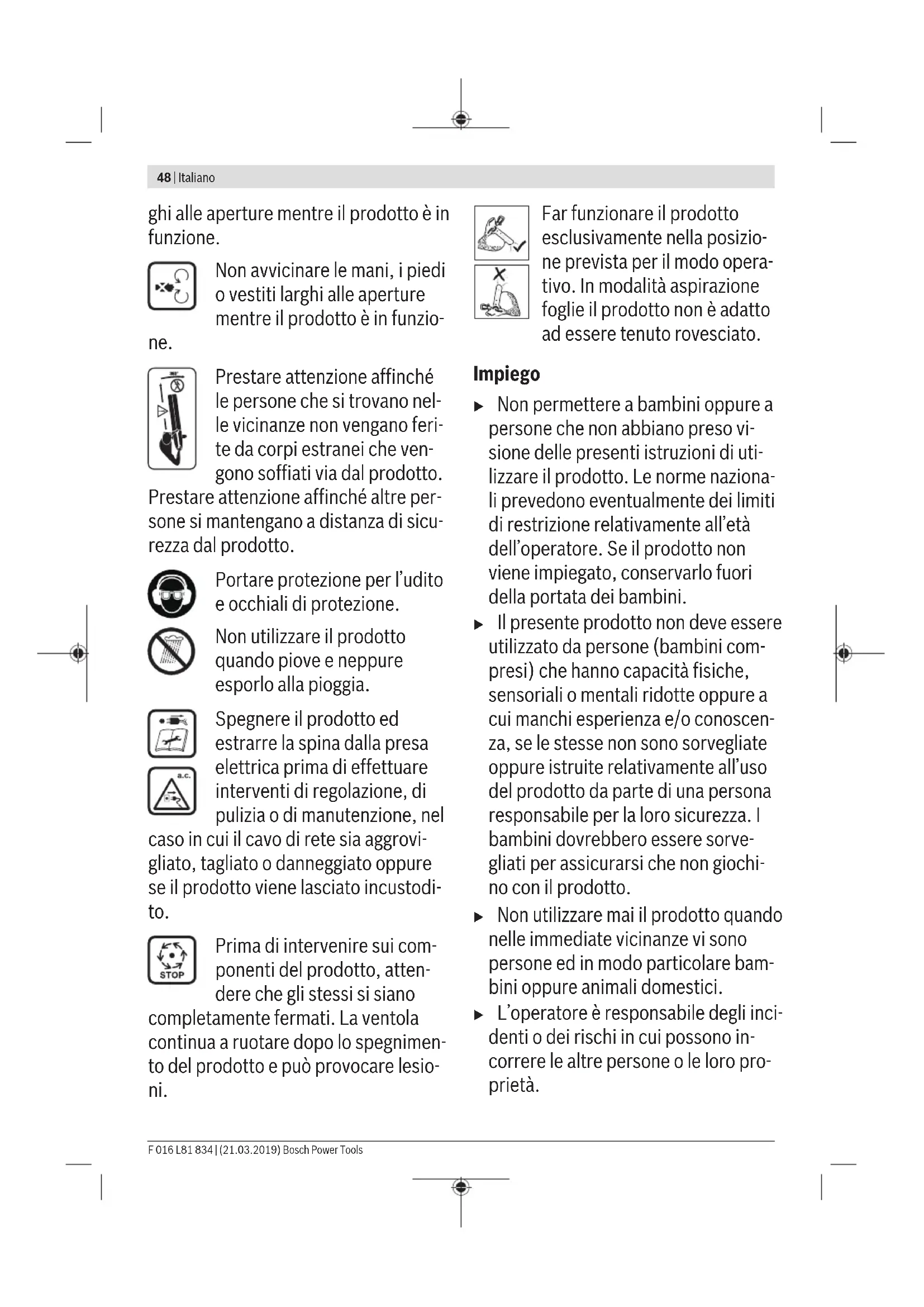 Prima dell'impiego del prodotto controllare l'ambiente circostante relativamente ad animali piccoli ed oggetti duri.