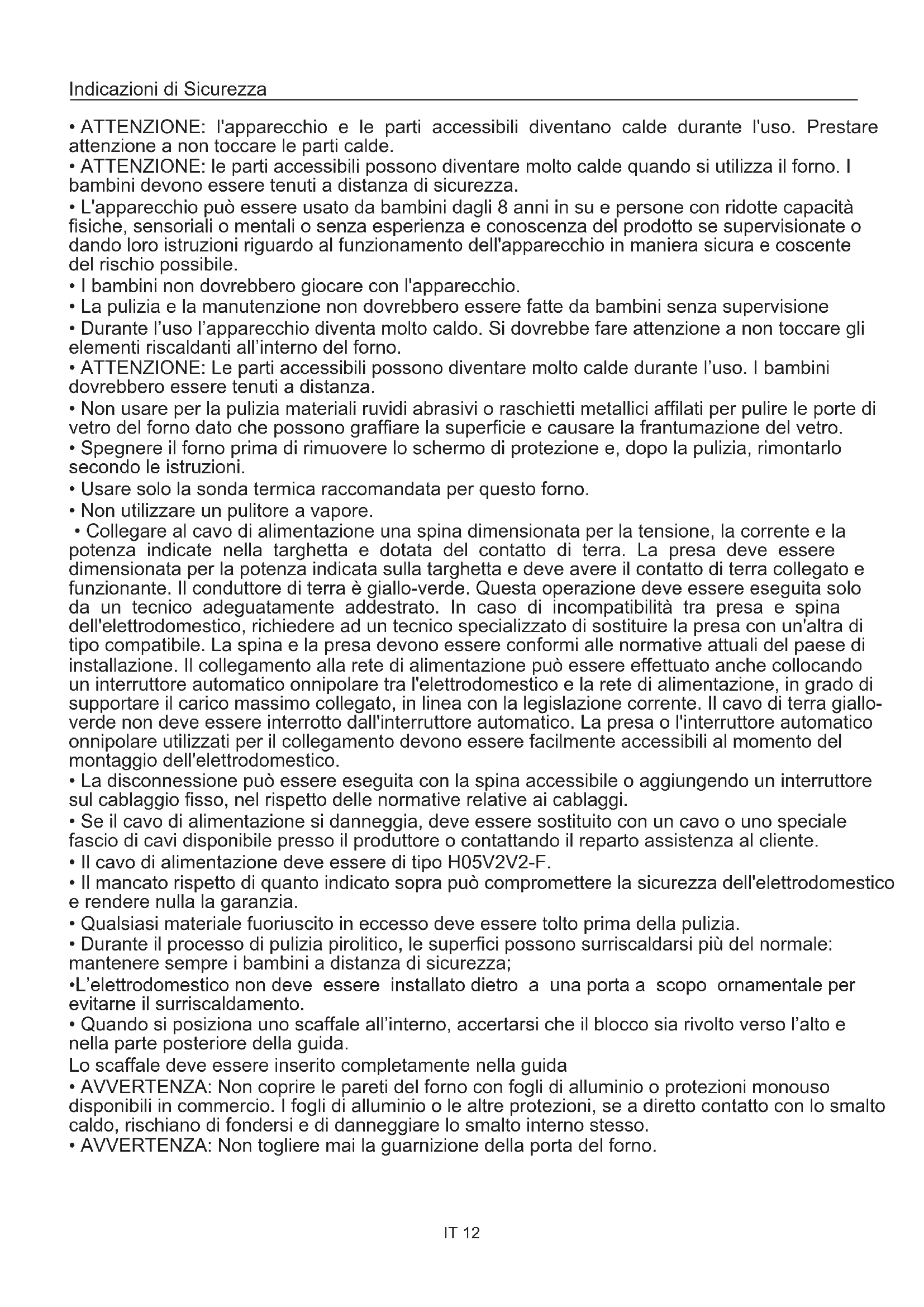 - AVVERTENZA: Non togliere mai la guarnizione della porta del forno. Indicazioni di Sicurezza IT 12Avvertenze Generali
