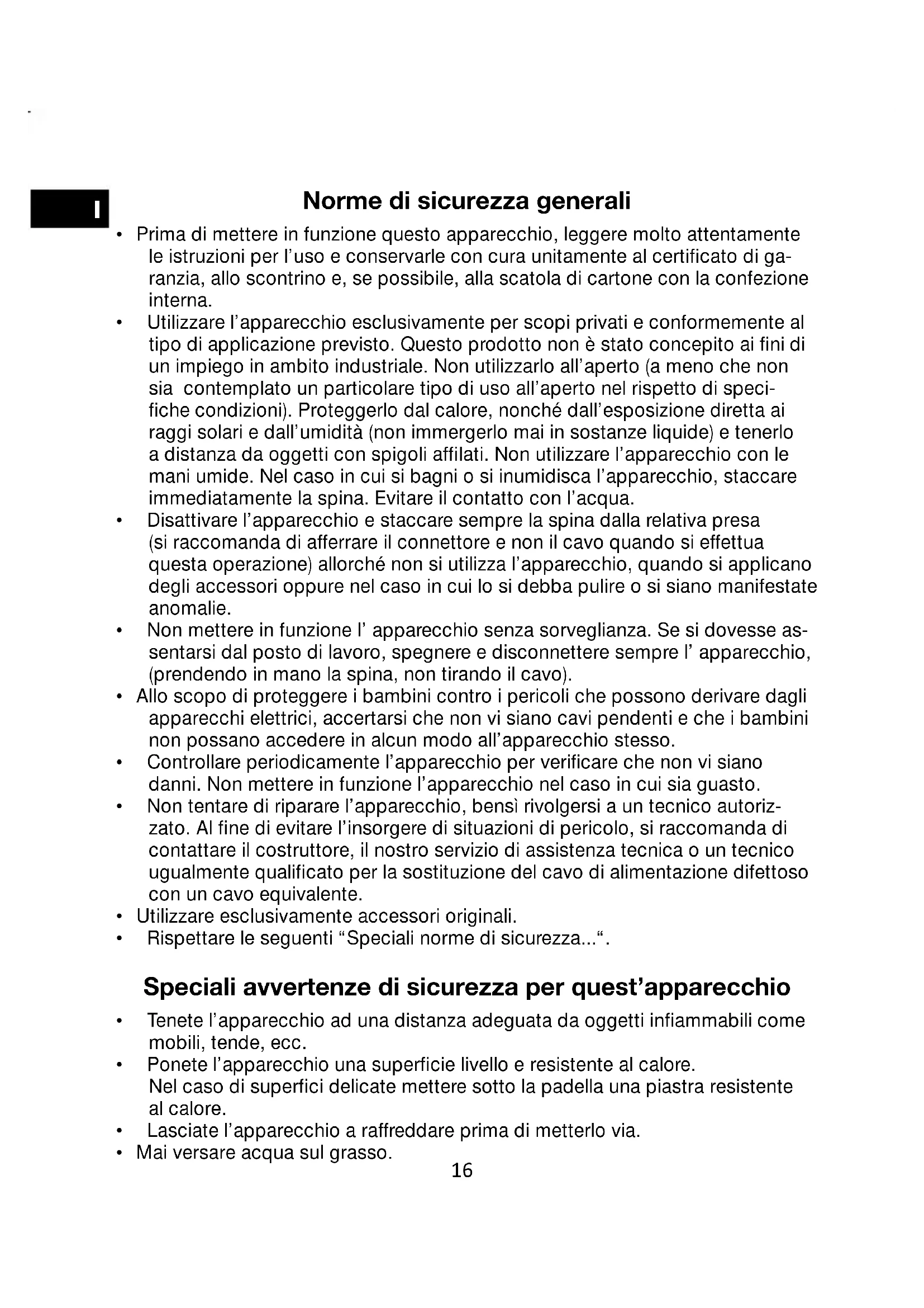 - Mai versare acqua sul grasso. 16I