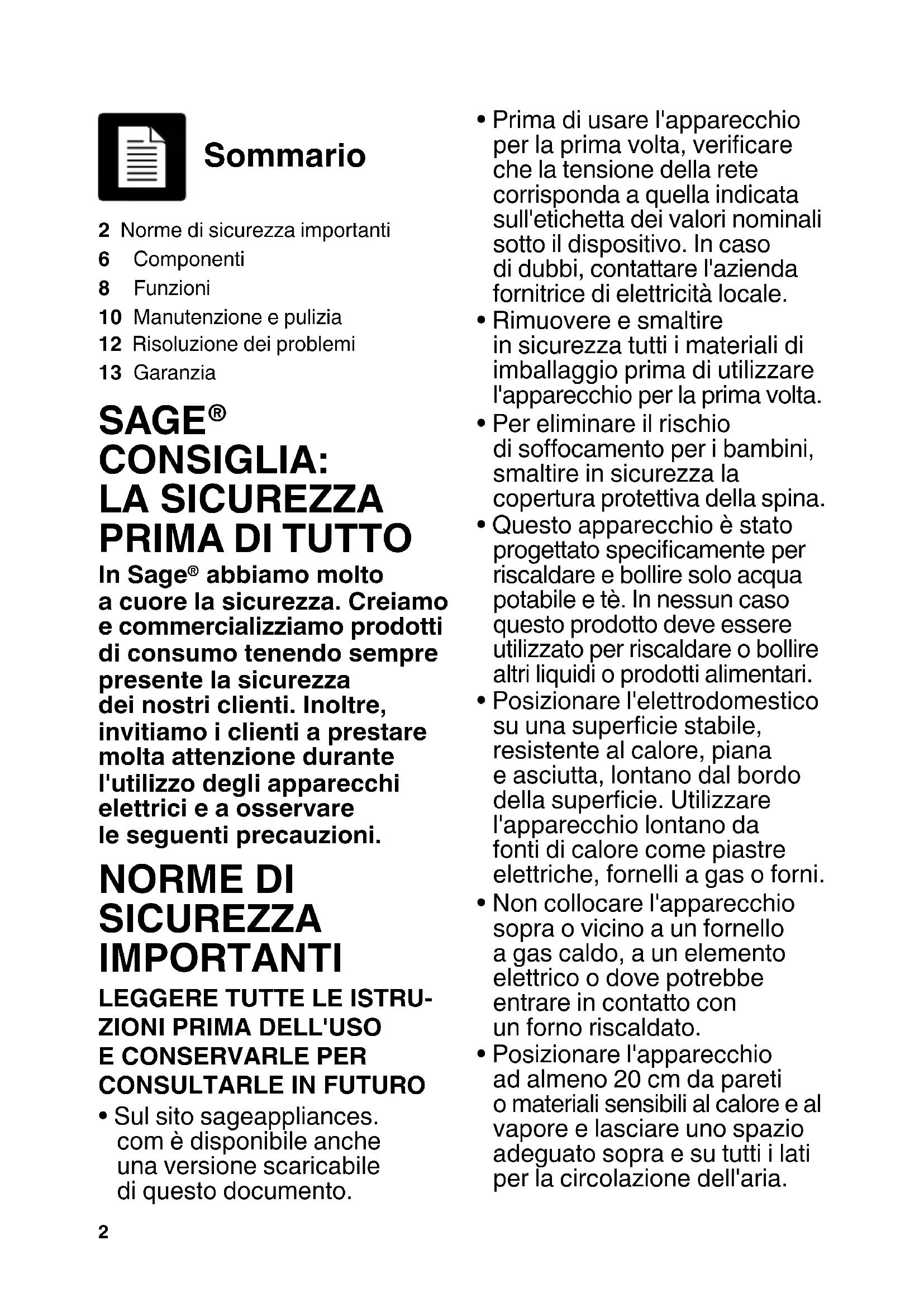 - Sul sito sageappliances. com è disponibile anche una versione scaricabile di questo documento.