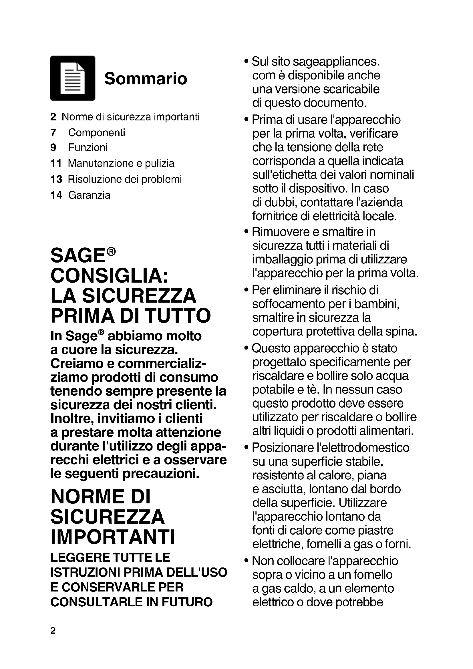 - Sul sito sageappliances. com è disponibile anche una versione scaricabile di questo documento.