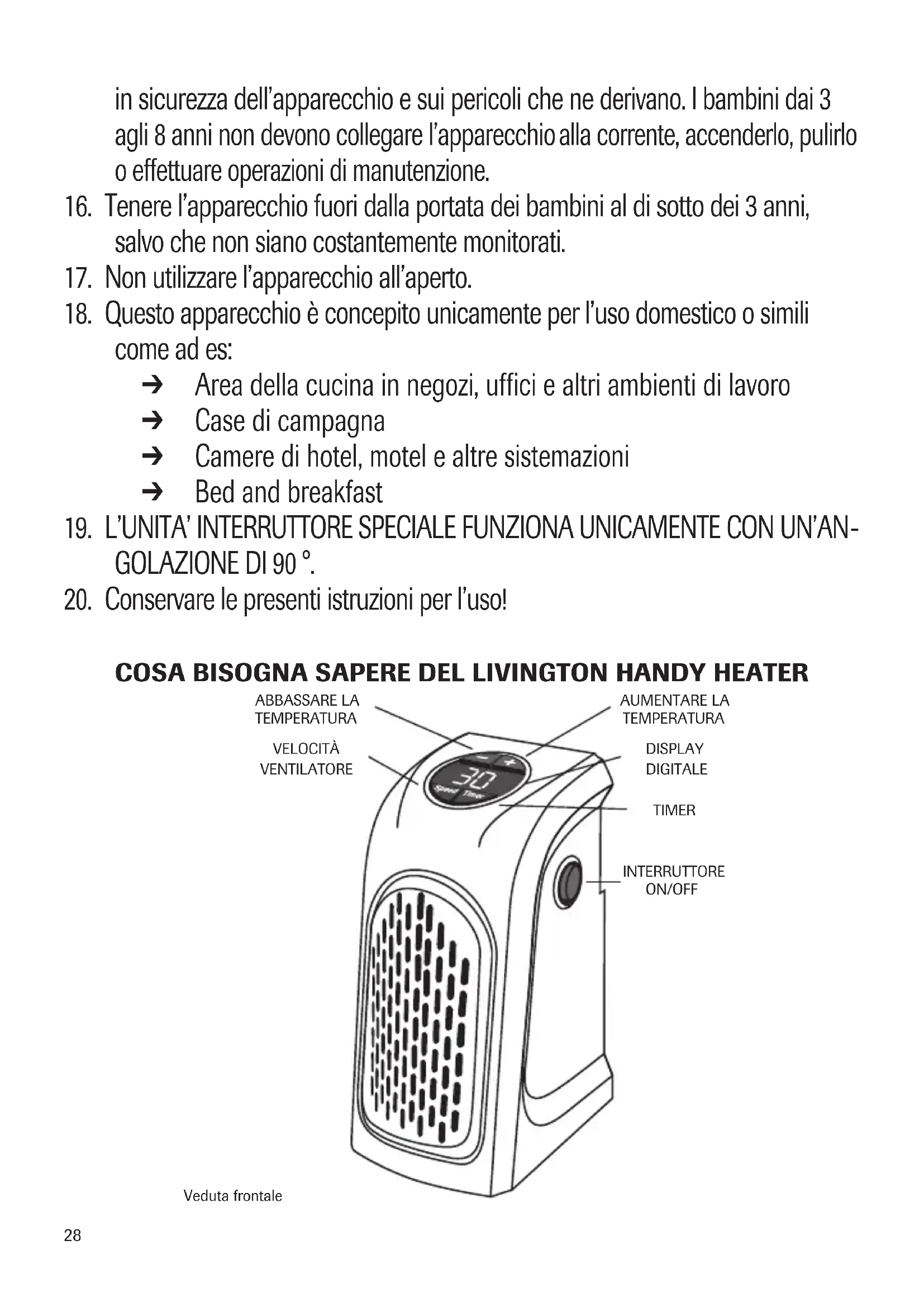 Scarica le istruzioni per il tuo Riscaldamento in formato PDF gratuitamente! Trova il tuo manuale Handy Heater - Livington e riprendi in mano il tuo dispositivo elettronico. In questa pagina sono pubblicati tutti i documenti necessari per l'utilizzo del tuo dispositivo. Handy Heater del marchio Livington.