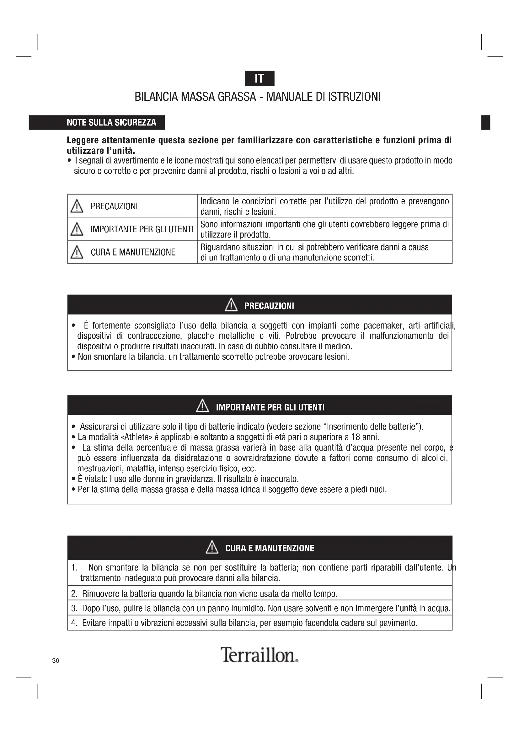- Non smontare la bilancia, un trattamento scorretto potrebbe provocare lesioni.