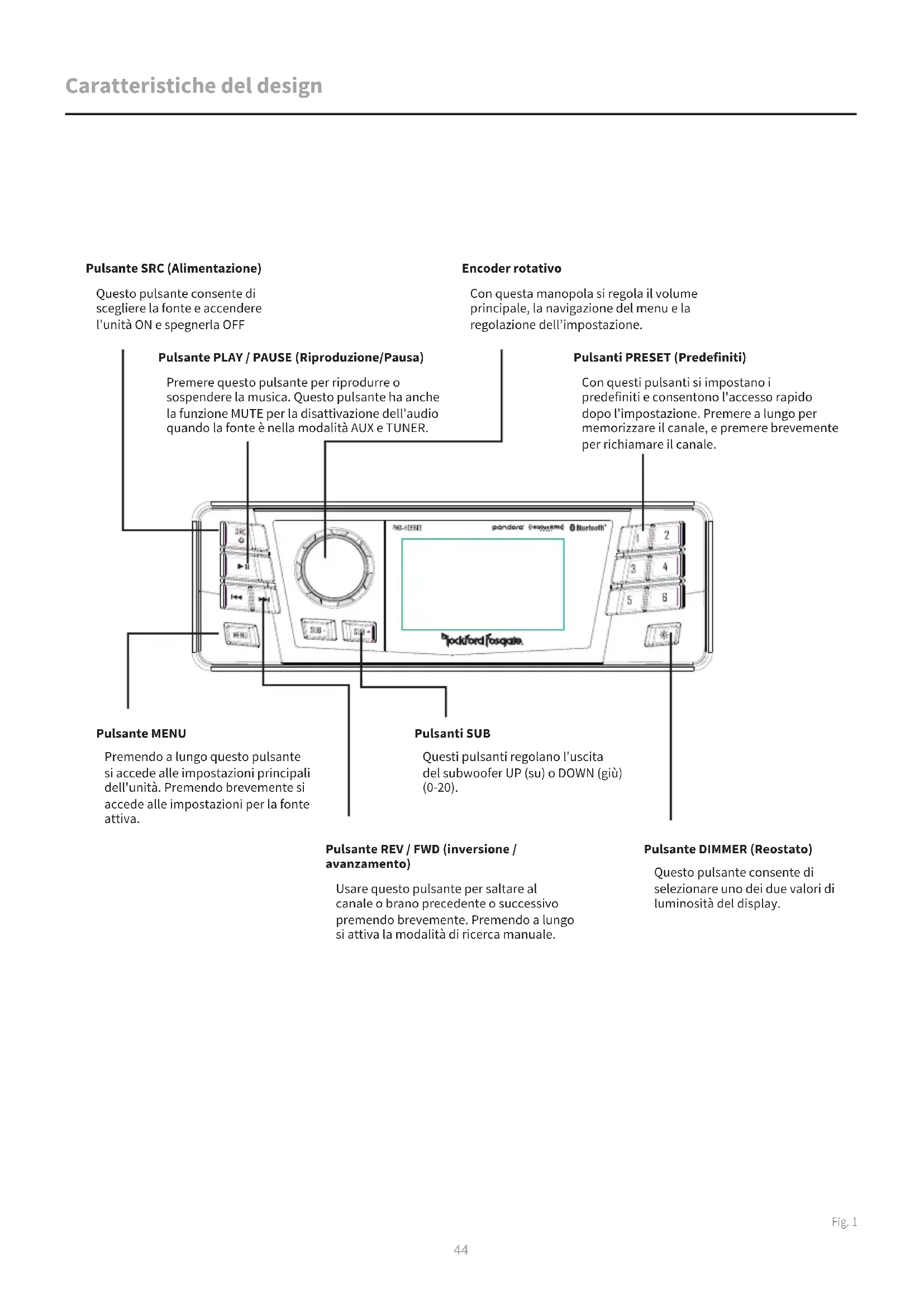 Con esta manopola si regola il volume principale, la navigazione del menu e la regolazione dell'impostazione.