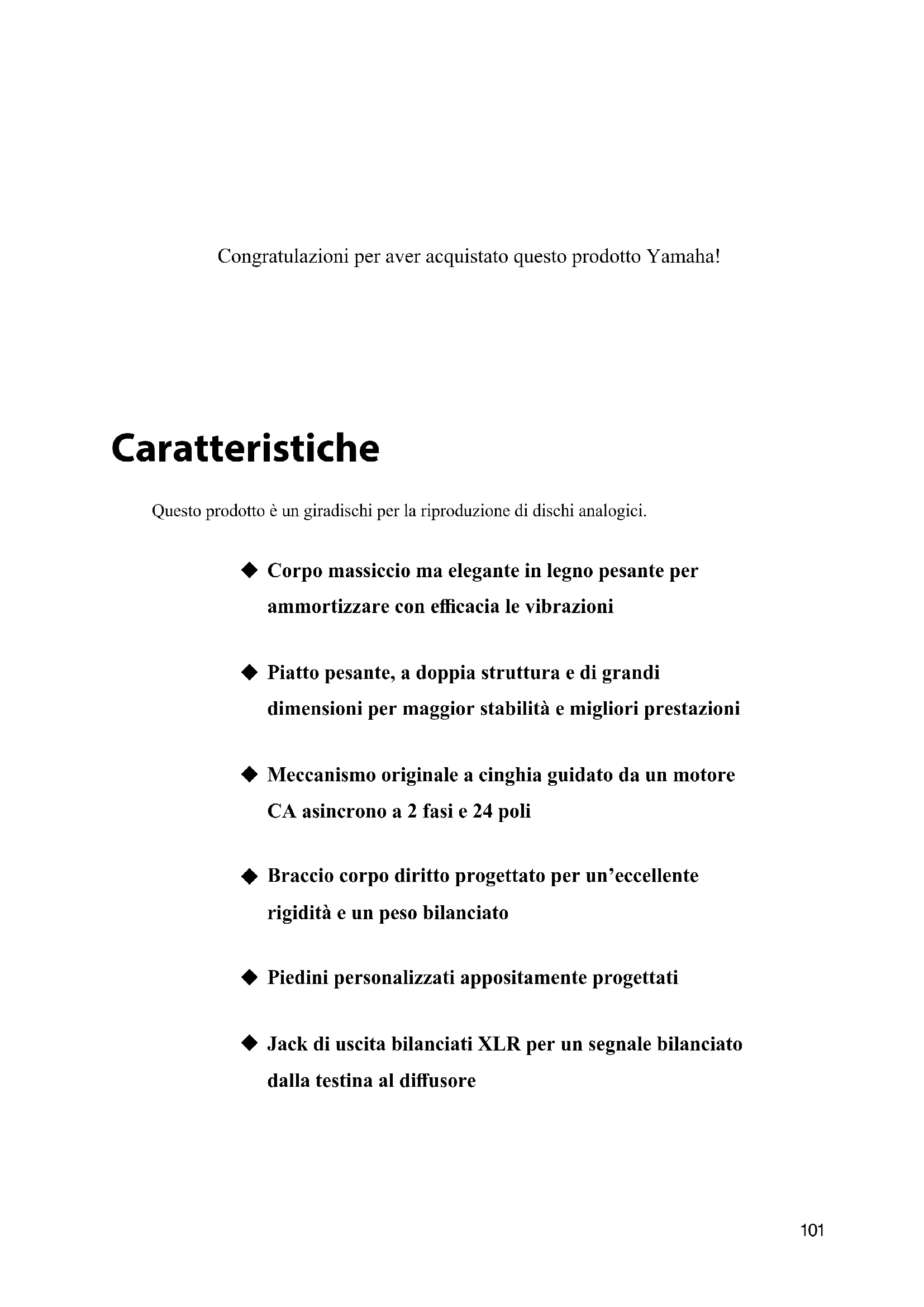 - Il contenuto del presente manuale si applica alle ultime speciche tecniche a partire dalla data di pubblicazione. Per ottenere la versione più recente del manuale, accedere al sito Web Yamaha e scaricare il le corrispondente.125 Enhorabuena por la compra de este producto Yamaha. Funciones Esta unidad es un giradiscos que permite reproducir discos analógicos.
