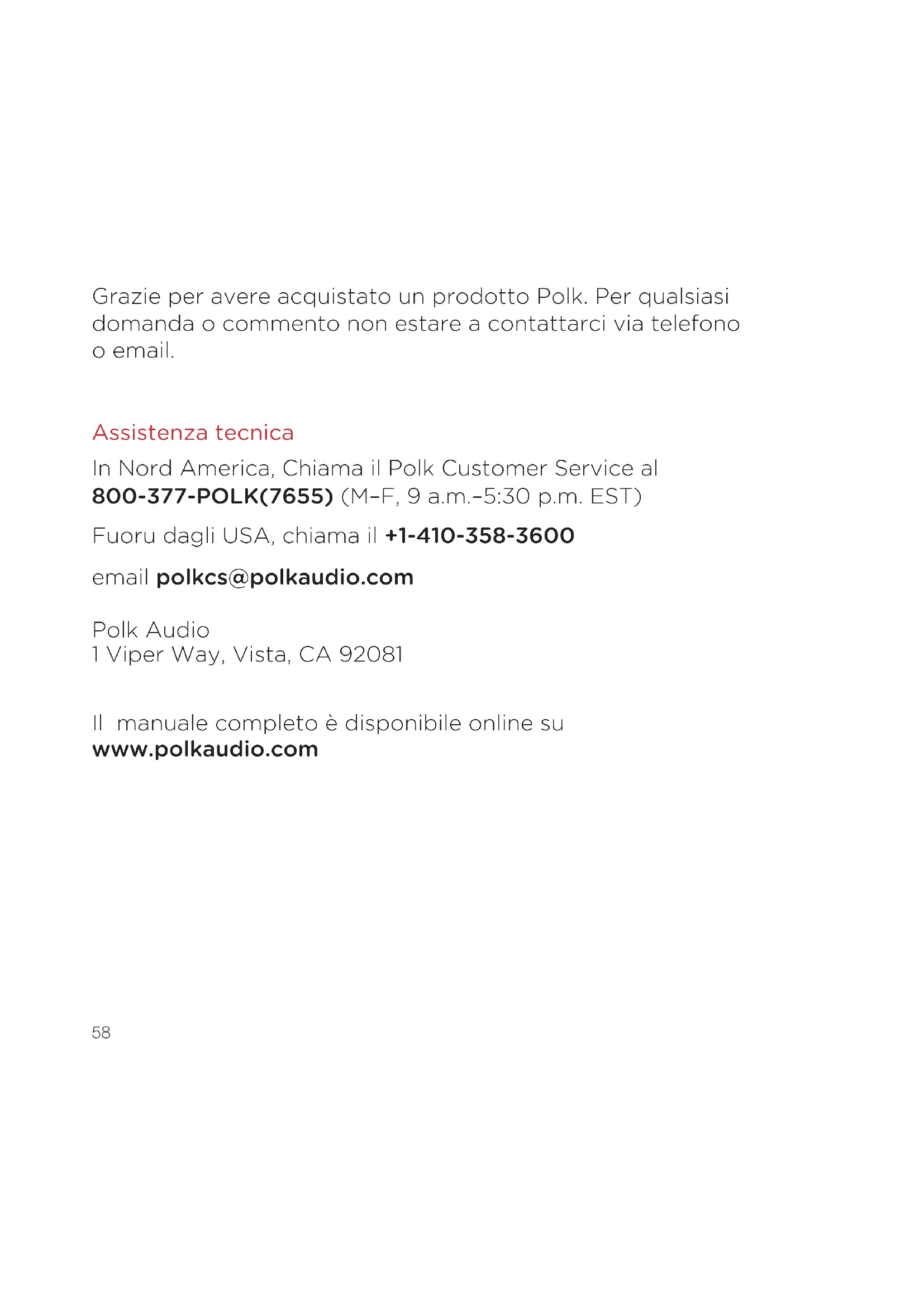 computer e seleziona Polk MagniFi Mini. Il LED diventerà blu fisso quando connesso al Bluetooth. Nota: per prendere il controllo quando è connesso un altro dispositivo, premi il pulsante Bluetooth. Come sentire la tua TV in seguito: Quando avrai finito di usare il Bluetooth, premi il pulsante fonte sulla sound bar o sul telecomando (TV ARC, OPT, AUX).1 Viper Way Vista, CA 92081 800-3777655 www.polkaudio.com HBP3656E