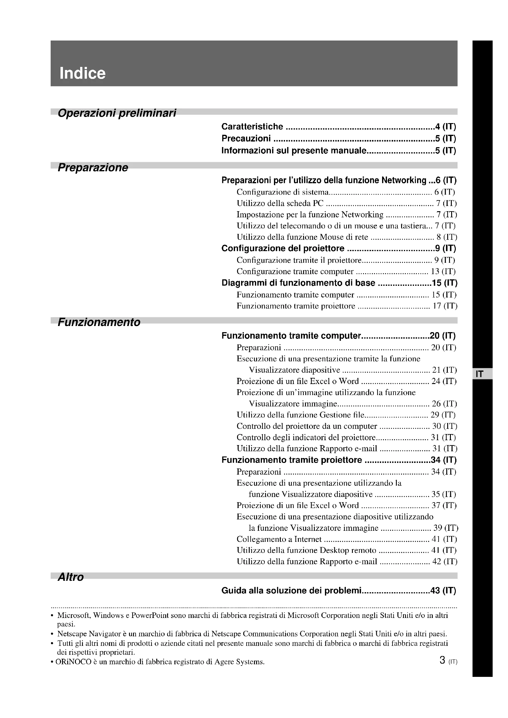 - (IT) Preparazione Preparazioni per l’utilizzo della funzione Networking p. 6
