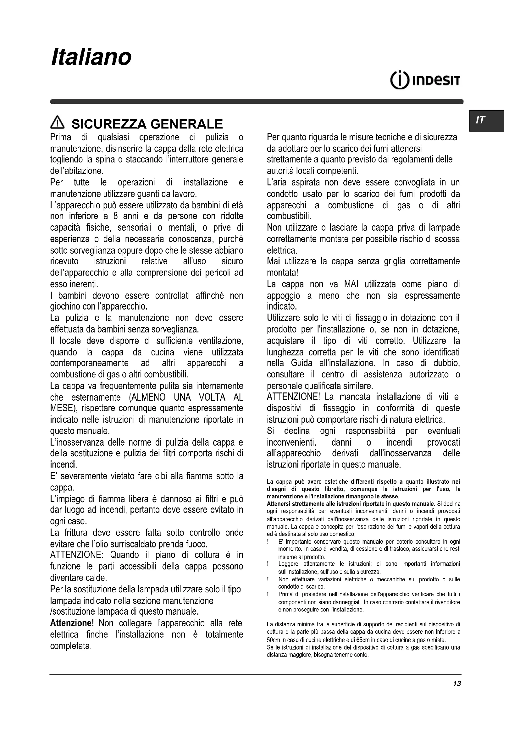 IHBS 9.5 AM X - Cappa da cucina INDESIT - Manuale utente e istruzioni gratuiti