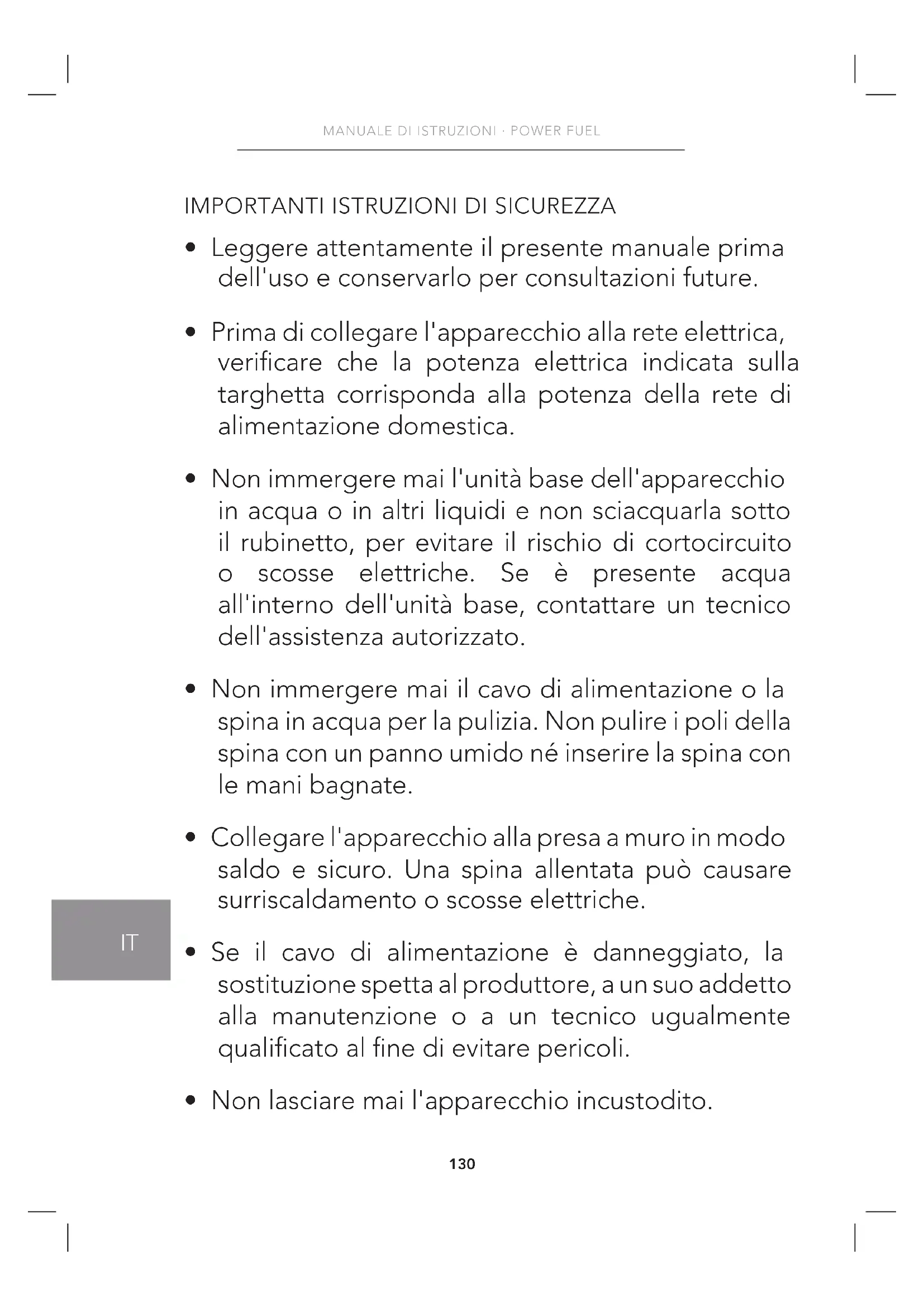 - Durante il funzionamento, chiudere bene il coperchio per evitare scottature dovute alla spruzzatura di liquidi caldi.