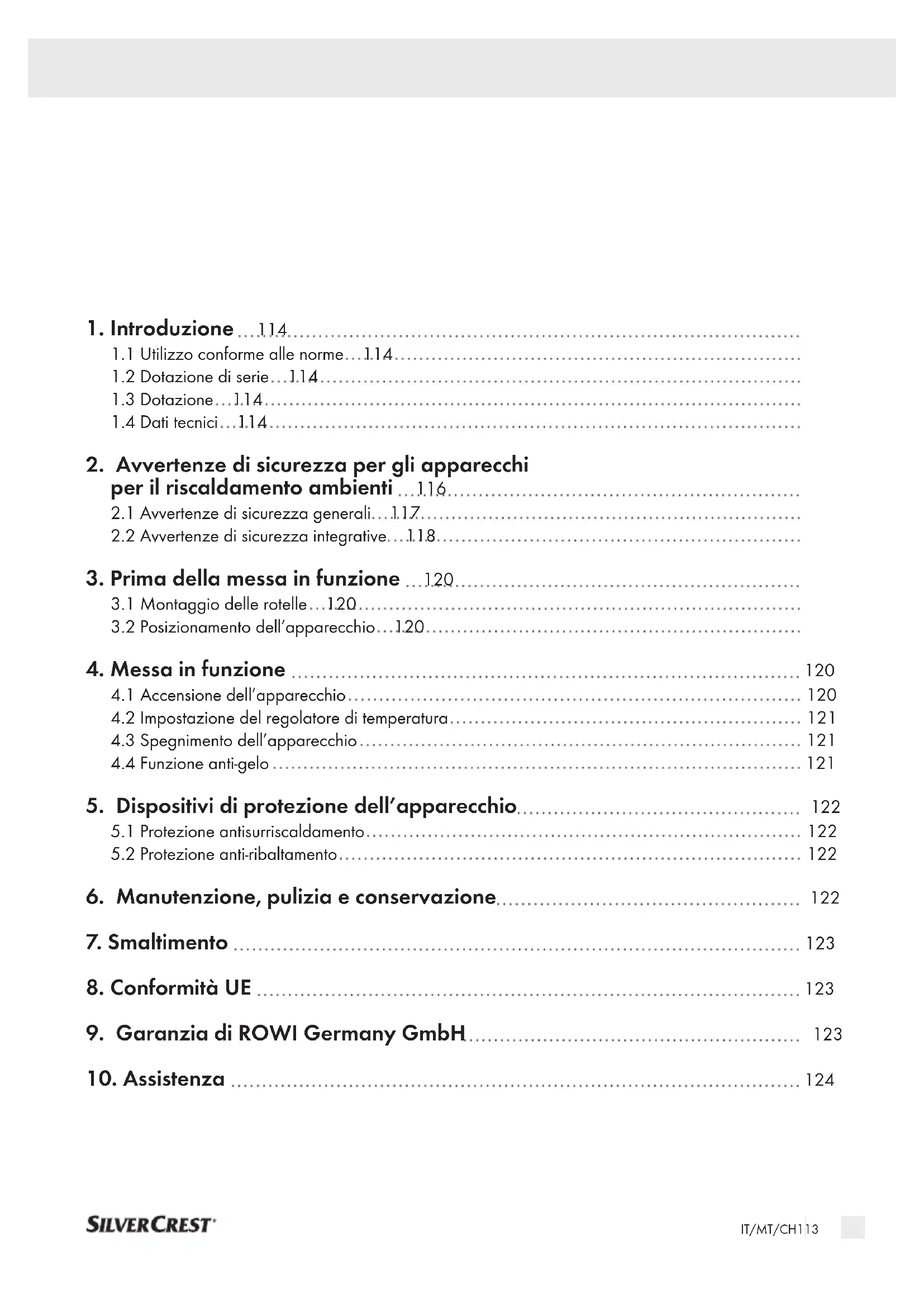 Conservare l’apparecchio in un ambiente pulito e asciutto. 4IT/MT/CH 123