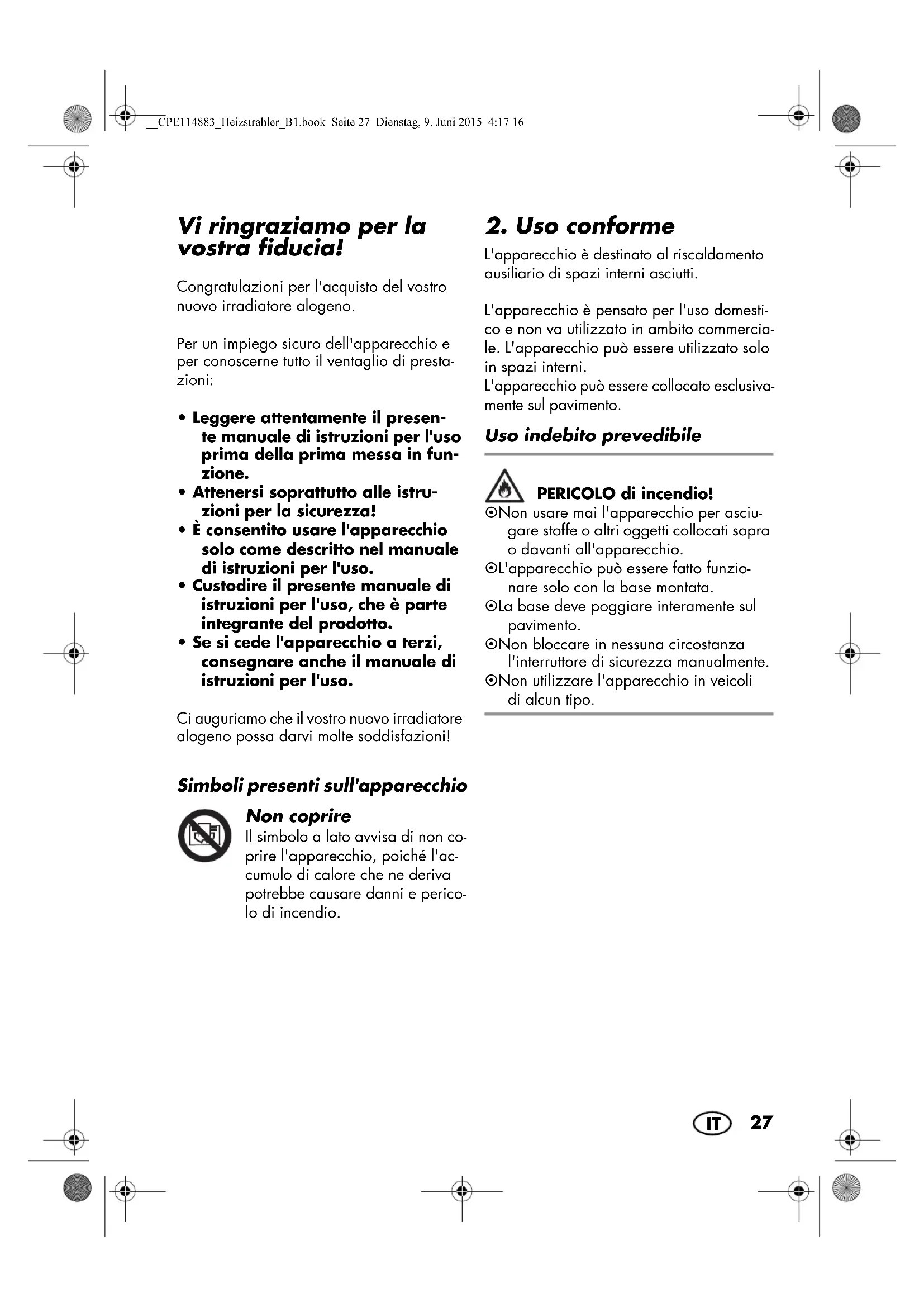 Vi ringraziamo per la vostra fiducia! Congratulazioni per l'acquisto del vostro nuovo irradiatore alogeno. Per un impiego sicuro dell'apparecchio e per conoscerne tutto il ventaglio di presta- zioni: