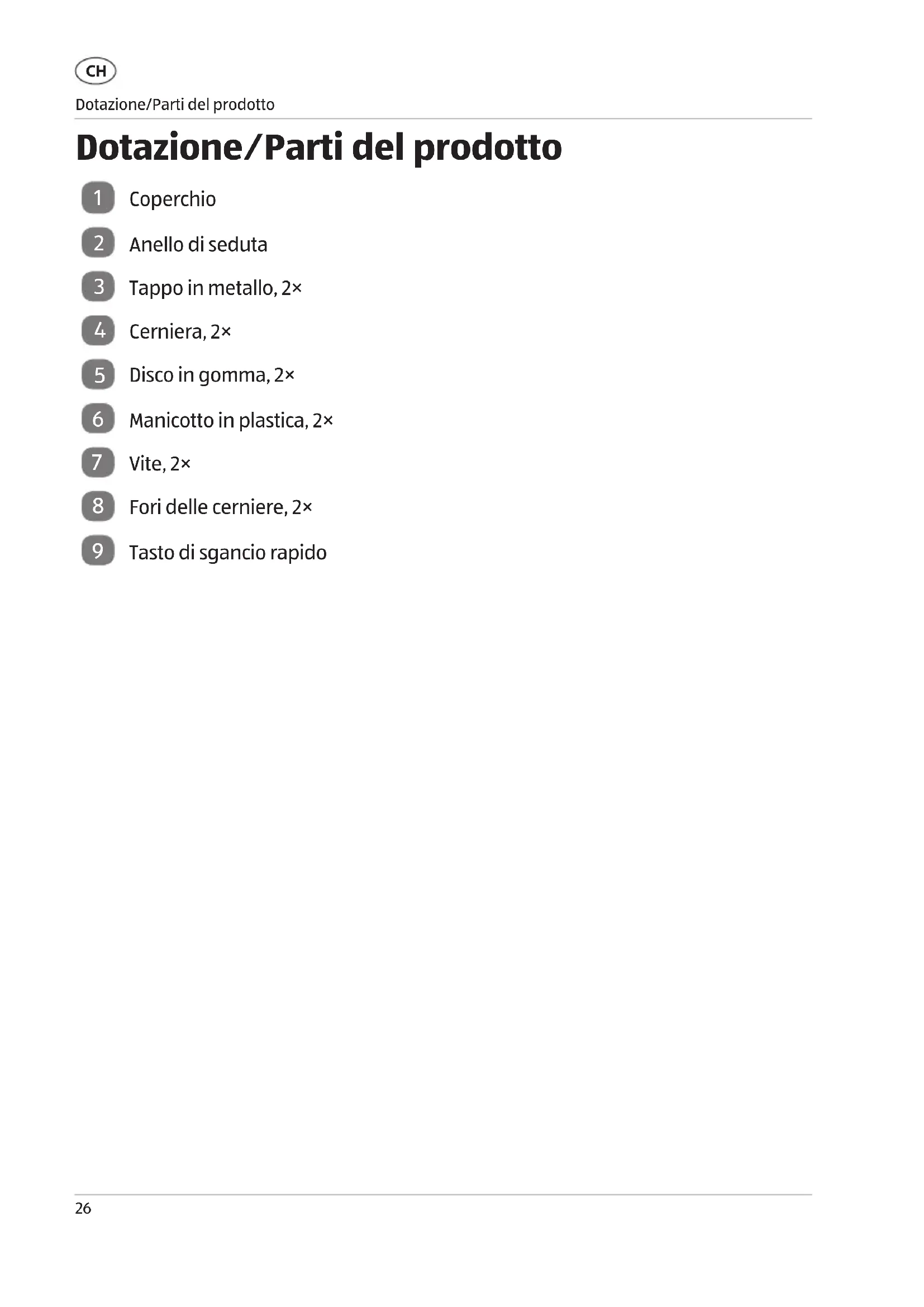Dotazione/Parti del prodotto