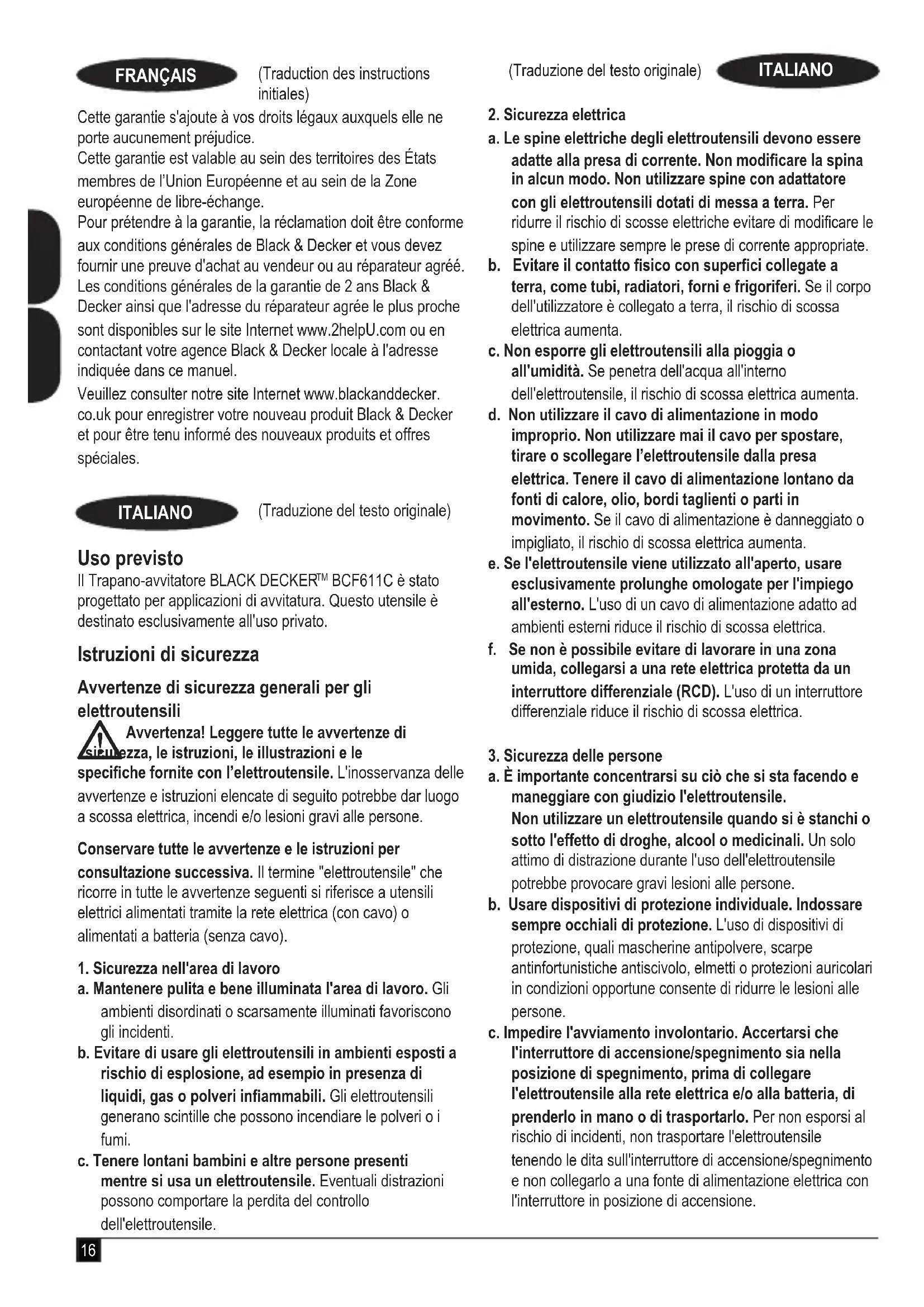MANUALE UTENTE BCF611C BLACK & DECKER