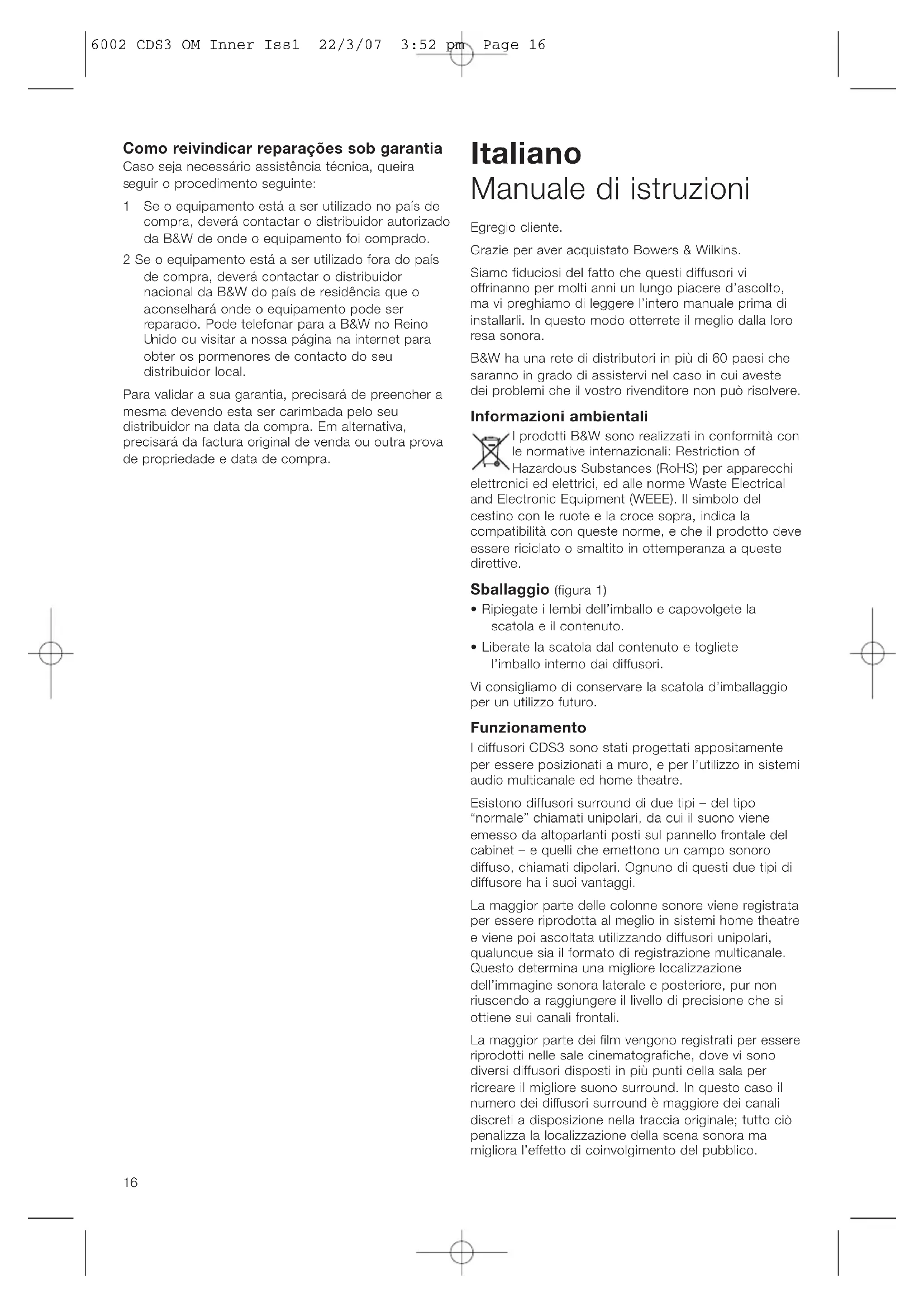 6002 CDS3 OM Inner Iss1 22/3/07 3:52 pm Page 18c he sarà in grado di fornire i dettagli della ditta incaricata delle riparazioni. Contattare B&W nel