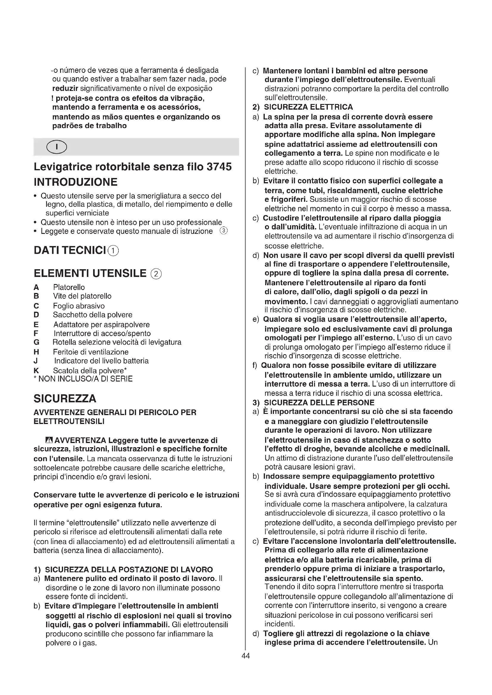 Levigatrice rotorbitale senza lo 3745 INTRODUZIONE