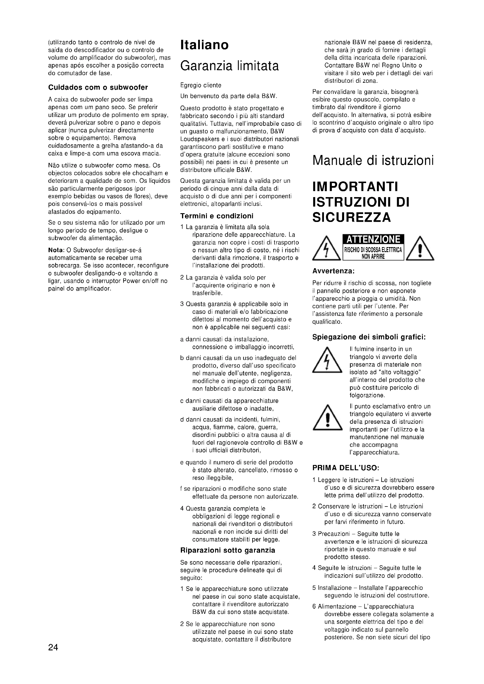 MANUALE UTENTE ASW850 BOWERS & WILKINS