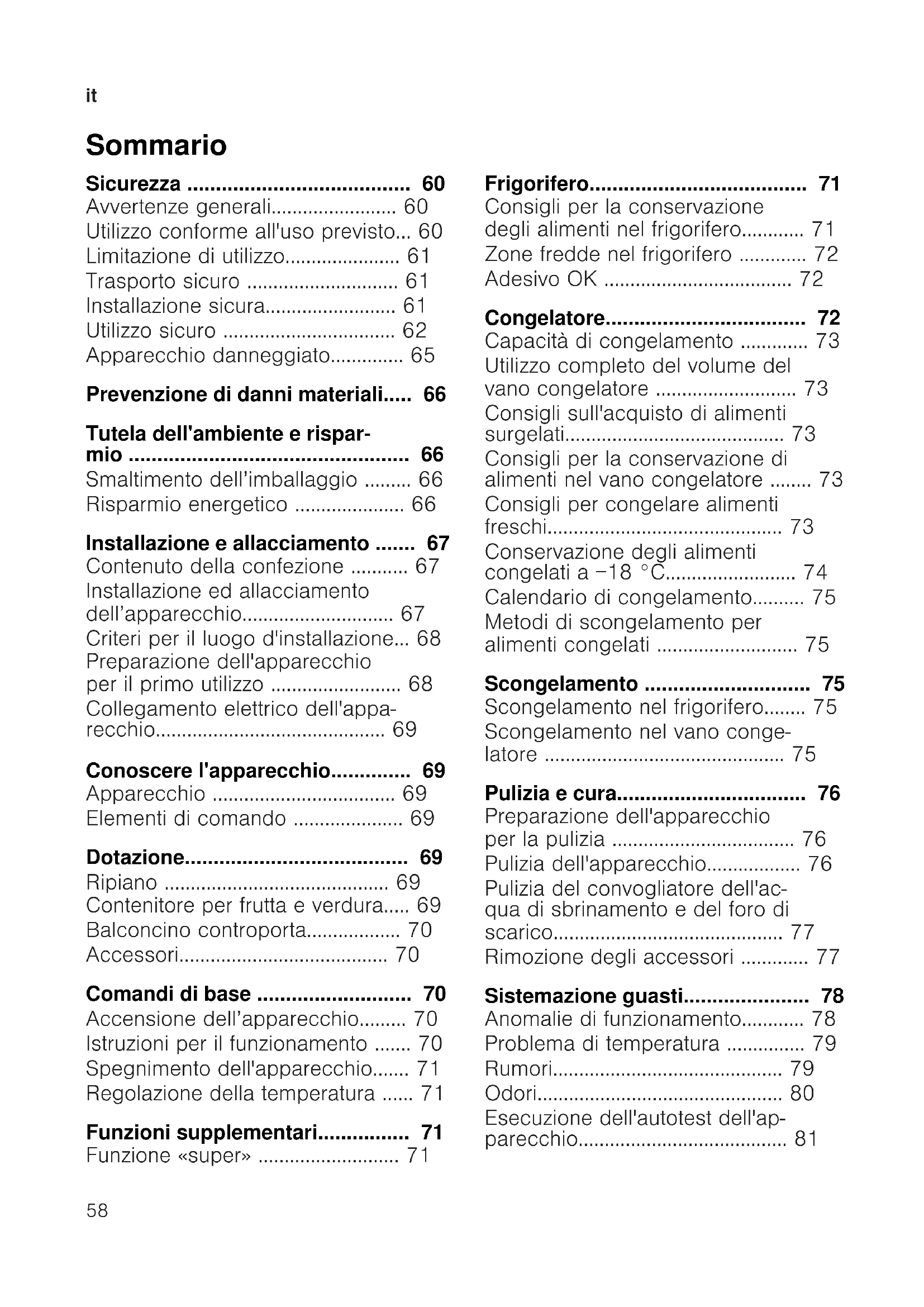 - Congelatore p. 72