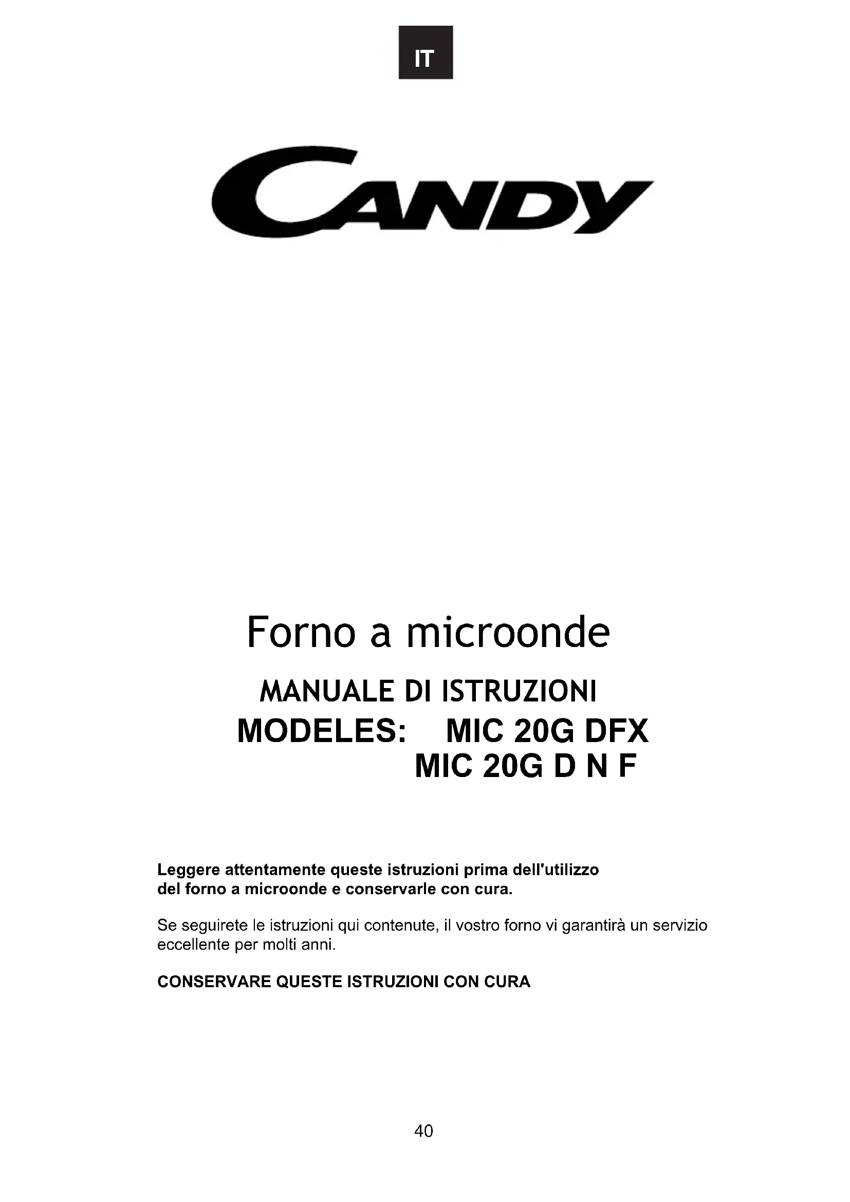 MANUALE UTENTE MIC20GDFXEE CANDY