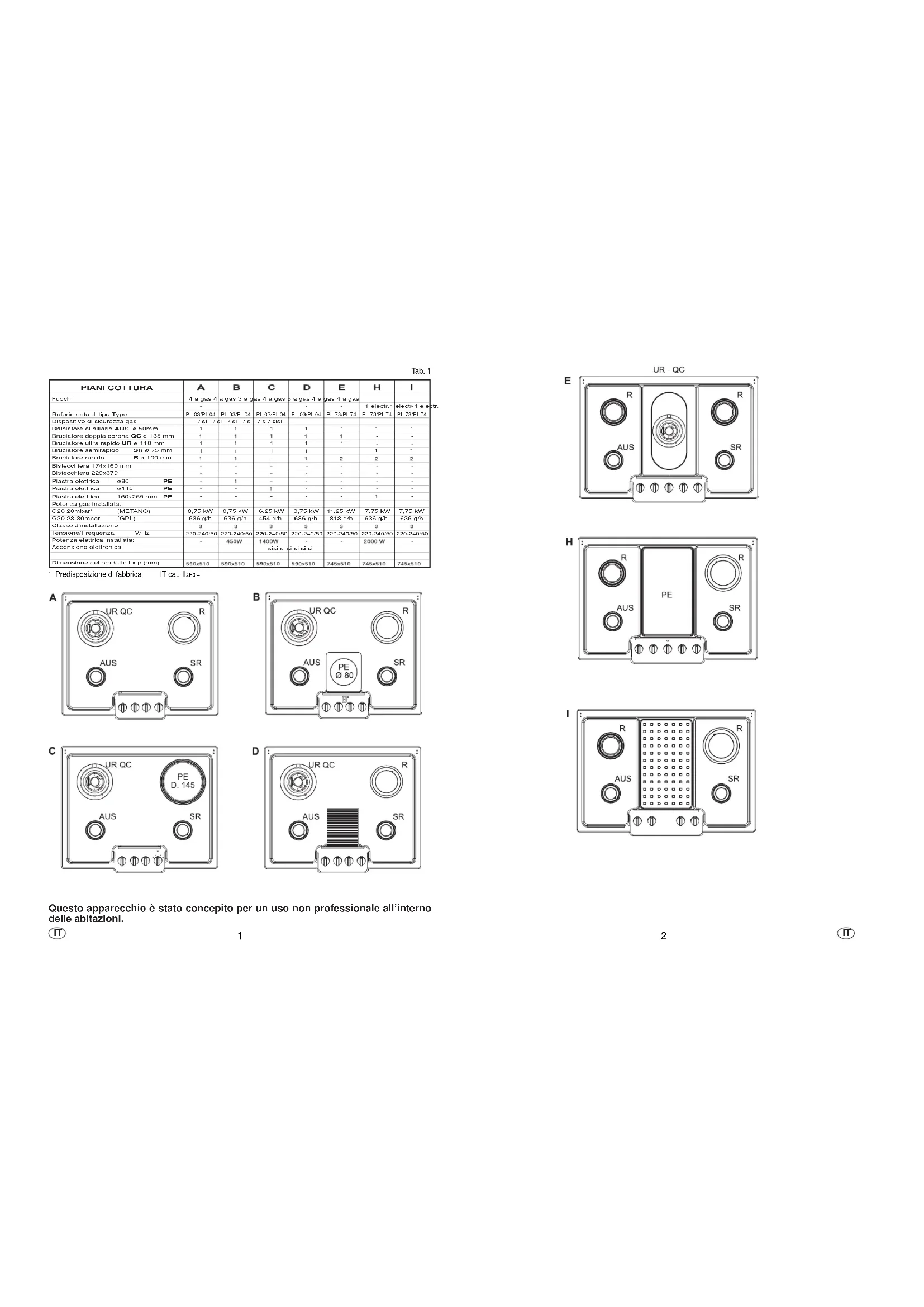 - Predisposizione di fabbrica IT cat. II2H3 + Tab. 1 Questo apparecchio è stato concepito per un uso non professionale all’interno delle abitazioni. IT IT4