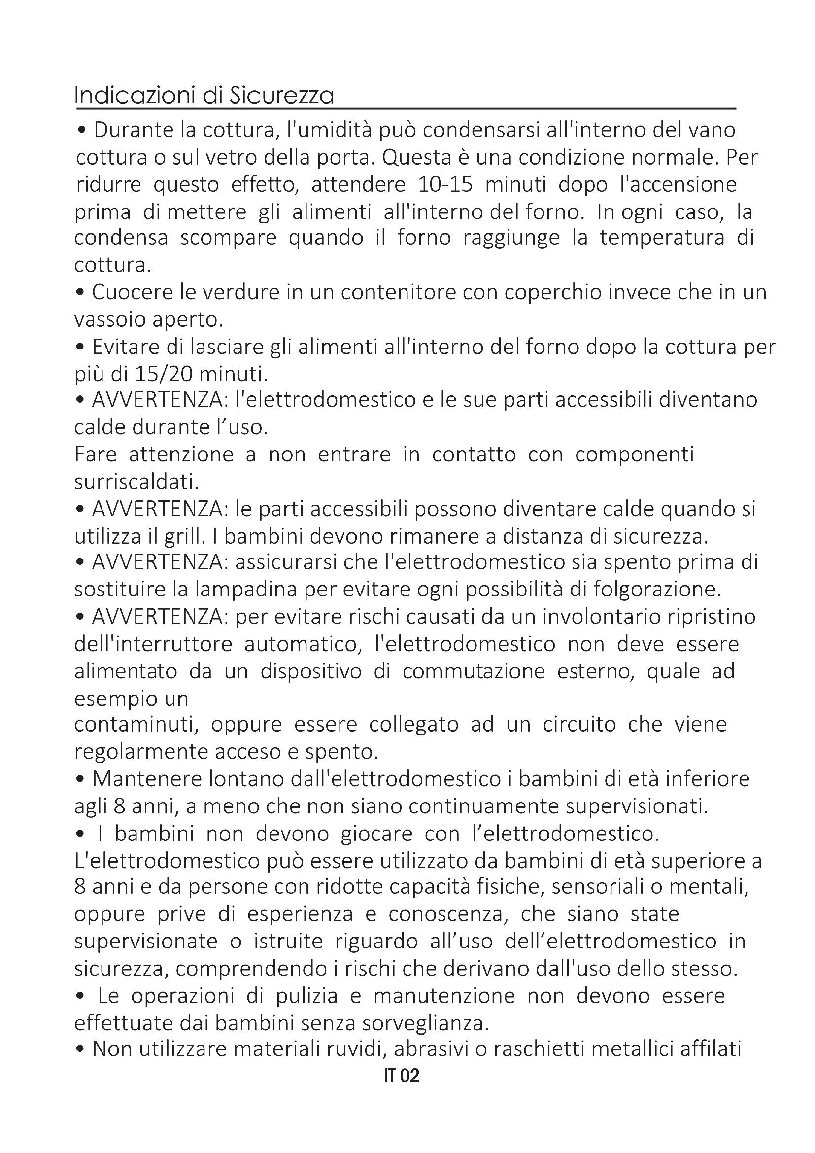 - Non utilizzare materiali ruvidi, abrasivi o raschietti metallici affilatiIT 03 per pulire le porte in vetro del forno, dato che possono graffiare la superficie e causare la frantumazione del vetro.