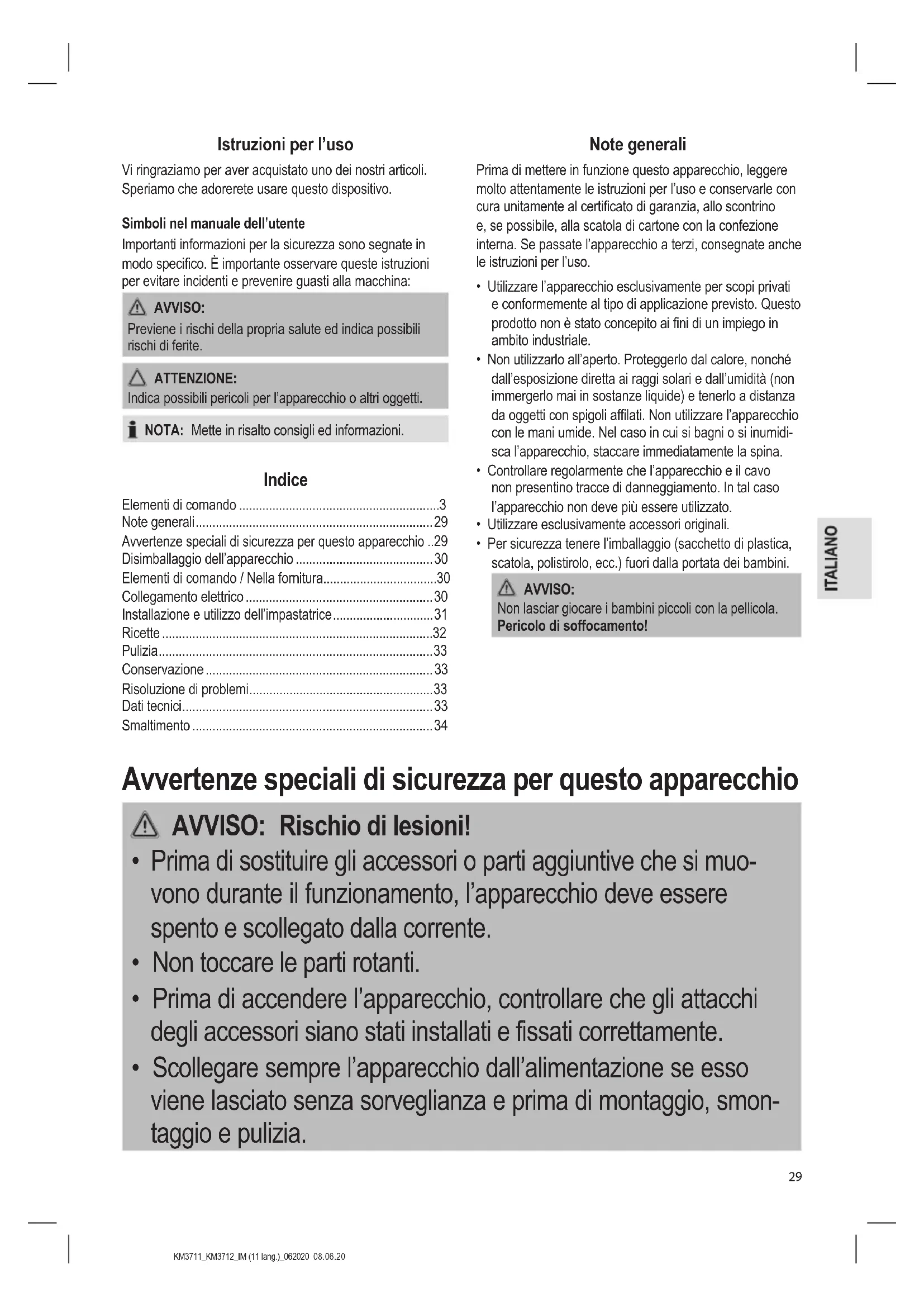 - Scollegare sempre l’apparecchio dall’alimentazione se esso viene lasciato senza sorveglianza e prima di montaggio, smon- taggio e pulizia.KM3711_KM3712_IM (11 lang.)_062020 08.06.20