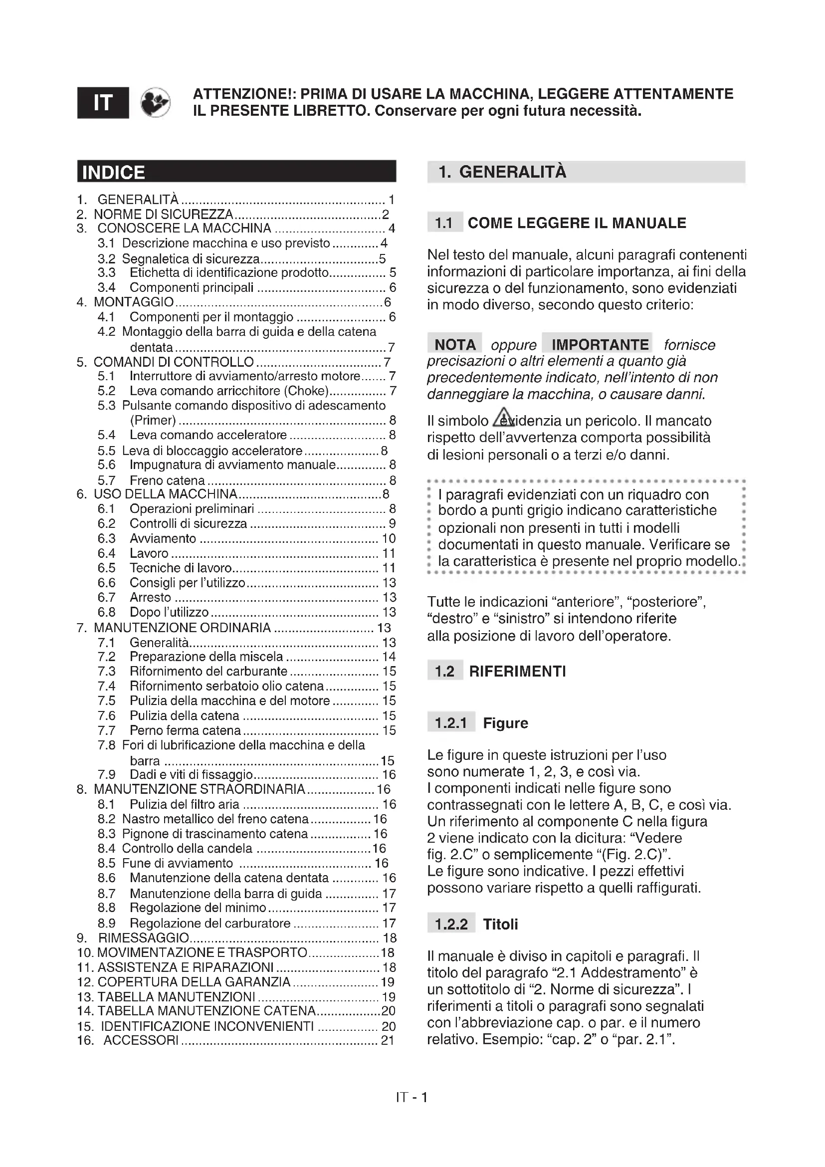 Il manuale è diviso in capitoli e paragra. Il titolo del paragrafo “2.1 Addestramento” è un sottotitolo di “2. Norme di sicurezza”. I riferimenti a titoli o paragra sono segnalati con l’abbreviazione cap. o par. e il numero relativo. Esempio: “cap. 2” o “par. 2.1”. ATTENZIONE!: PRIMA DI USARE LA MACCHINA, LEGGERE ATTENTAMENTE IL PRESENTE LIBRETTO. Conservare per ogni futura necessità.