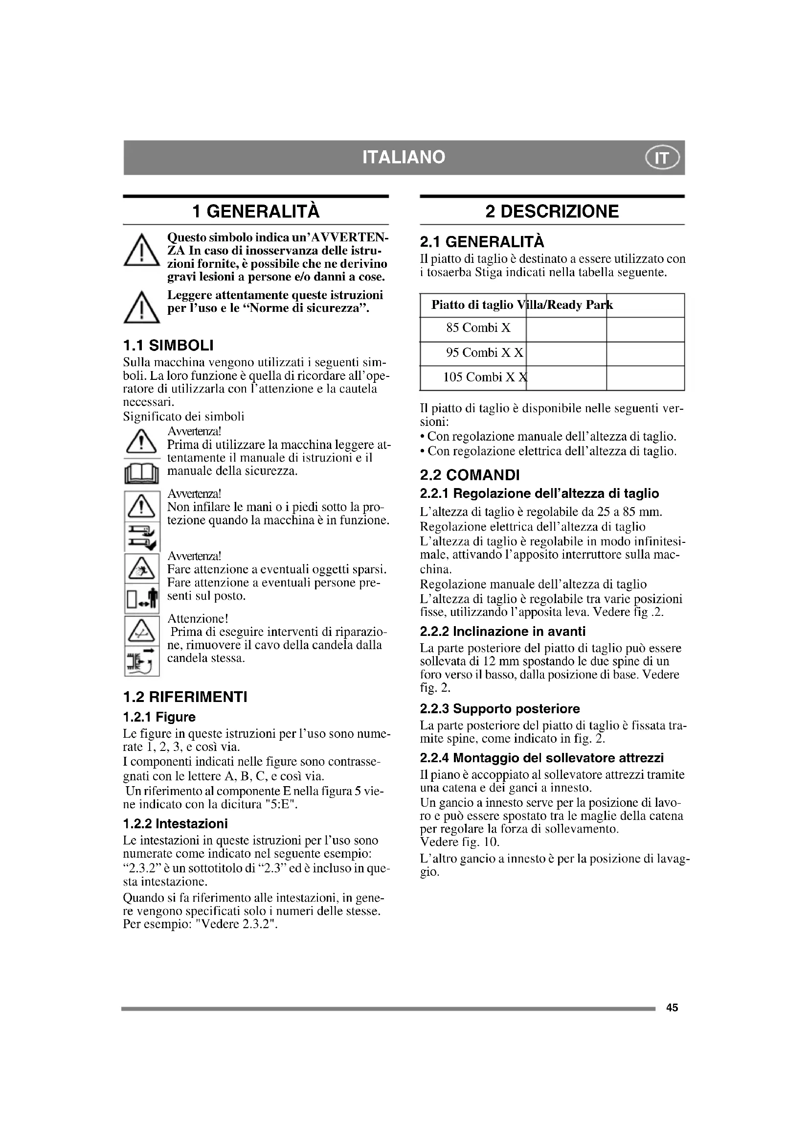MANUALE UTENTE VILLA 95 COMBI STIGA