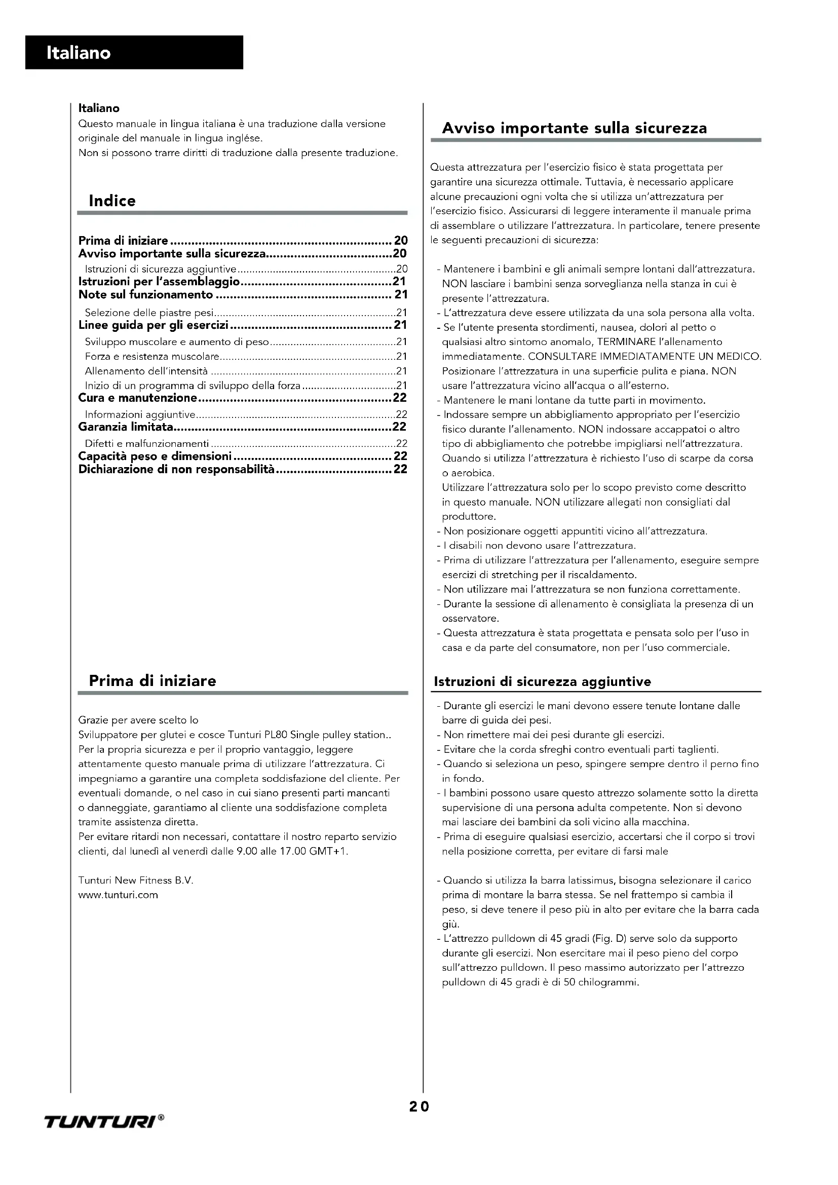 Single Pulley Station PL80 - Attrezzatura fitness TUNTURI - Manuale utente e istruzioni gratuiti