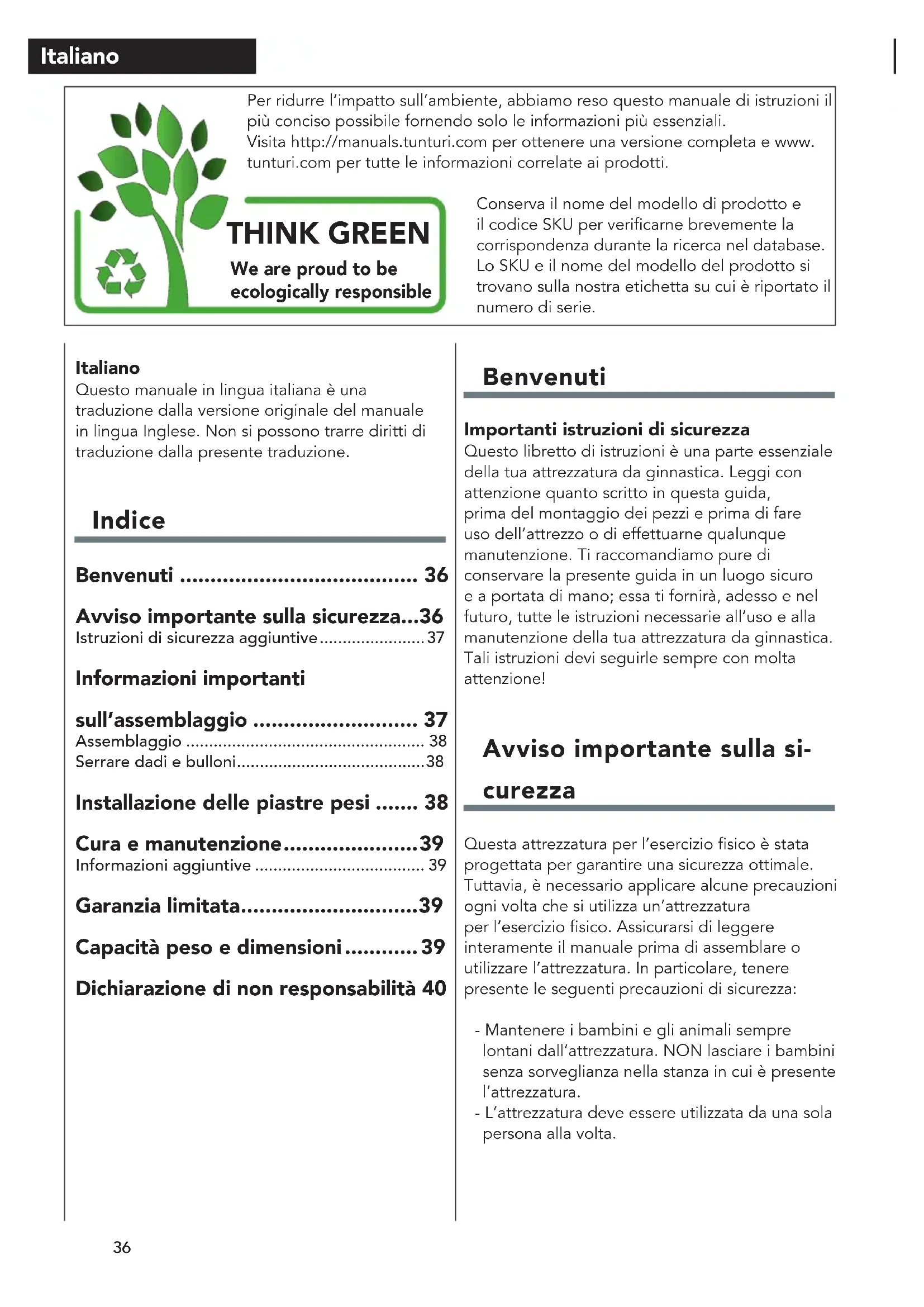 MANUALE UTENTE Home Gym HG80 TUNTURI